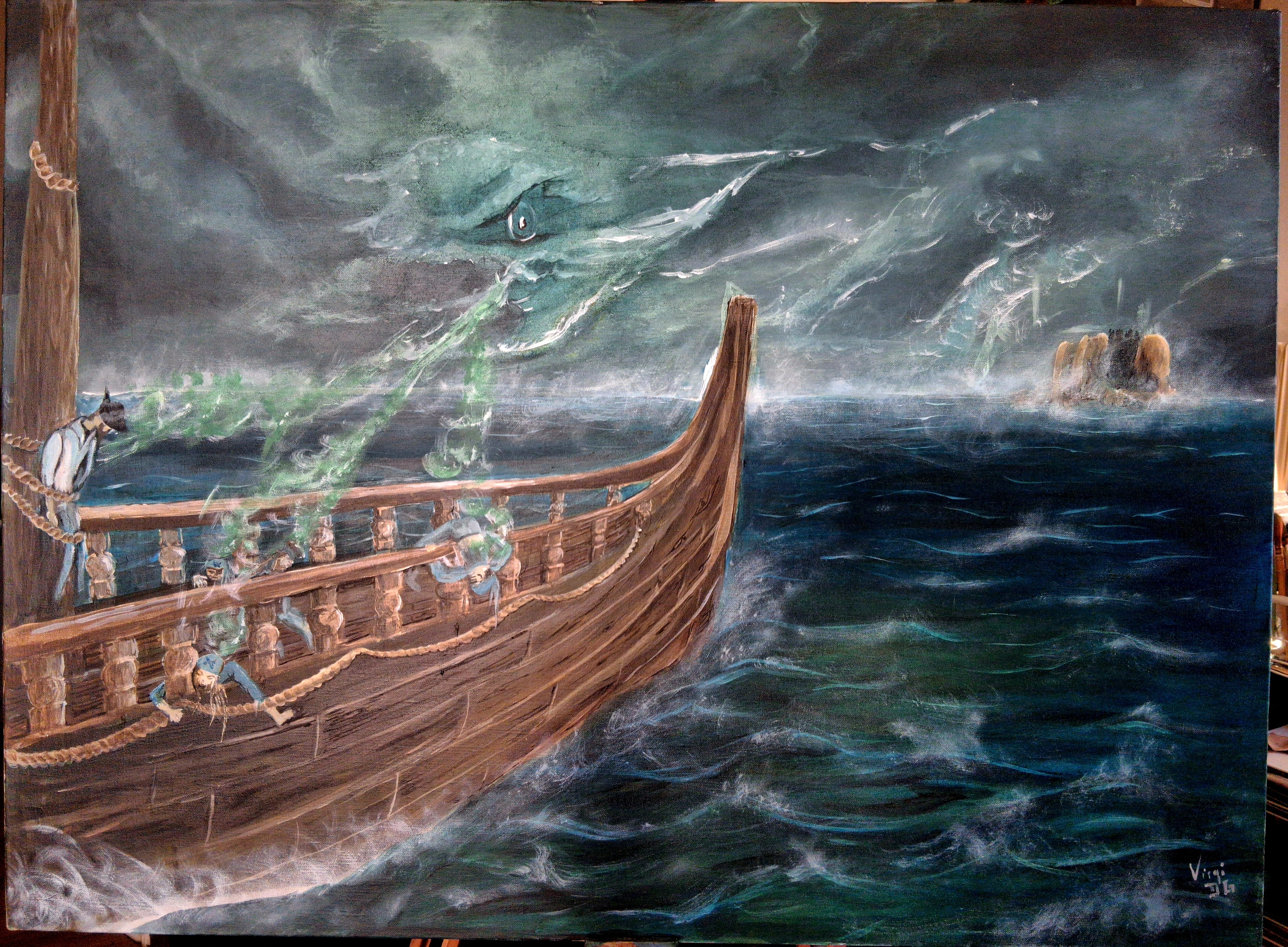 Cette toile est inspiré de "L’ile des morts" d’Arnold Böcklin l’œuvre préférée de ma fille.