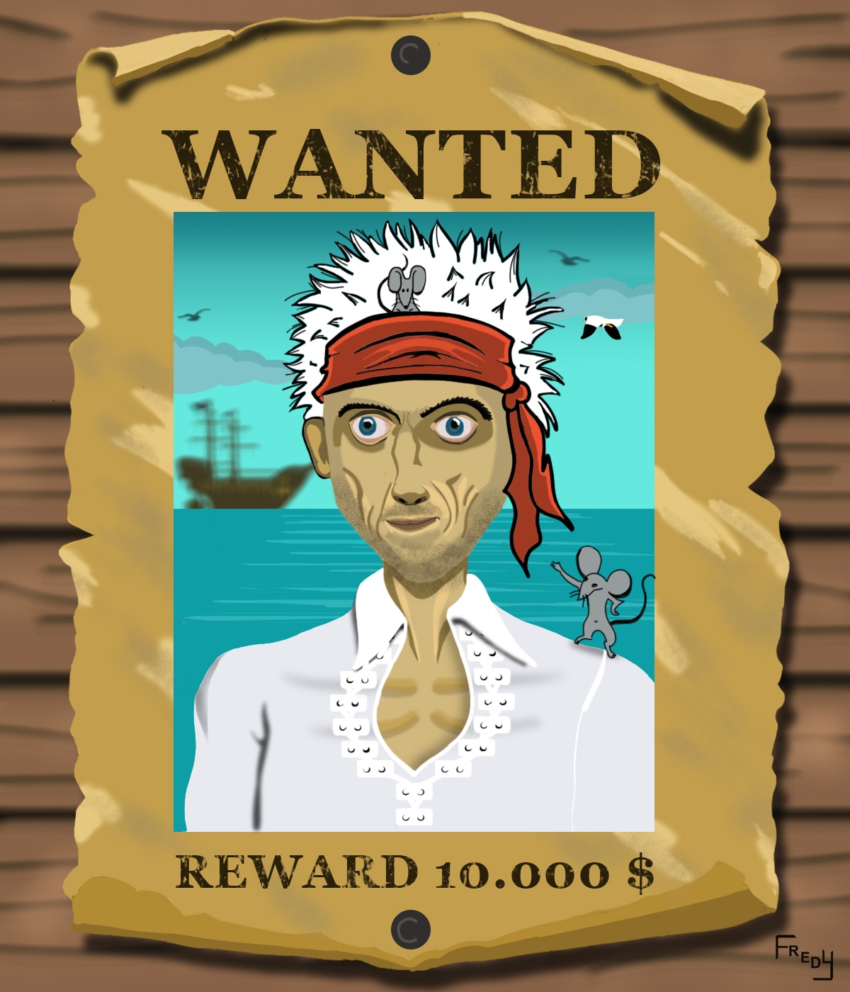 voila ; alors je suis partie sur une idée des affiches de one pieces , vue que long-nez fait parties des pirates recherchés .