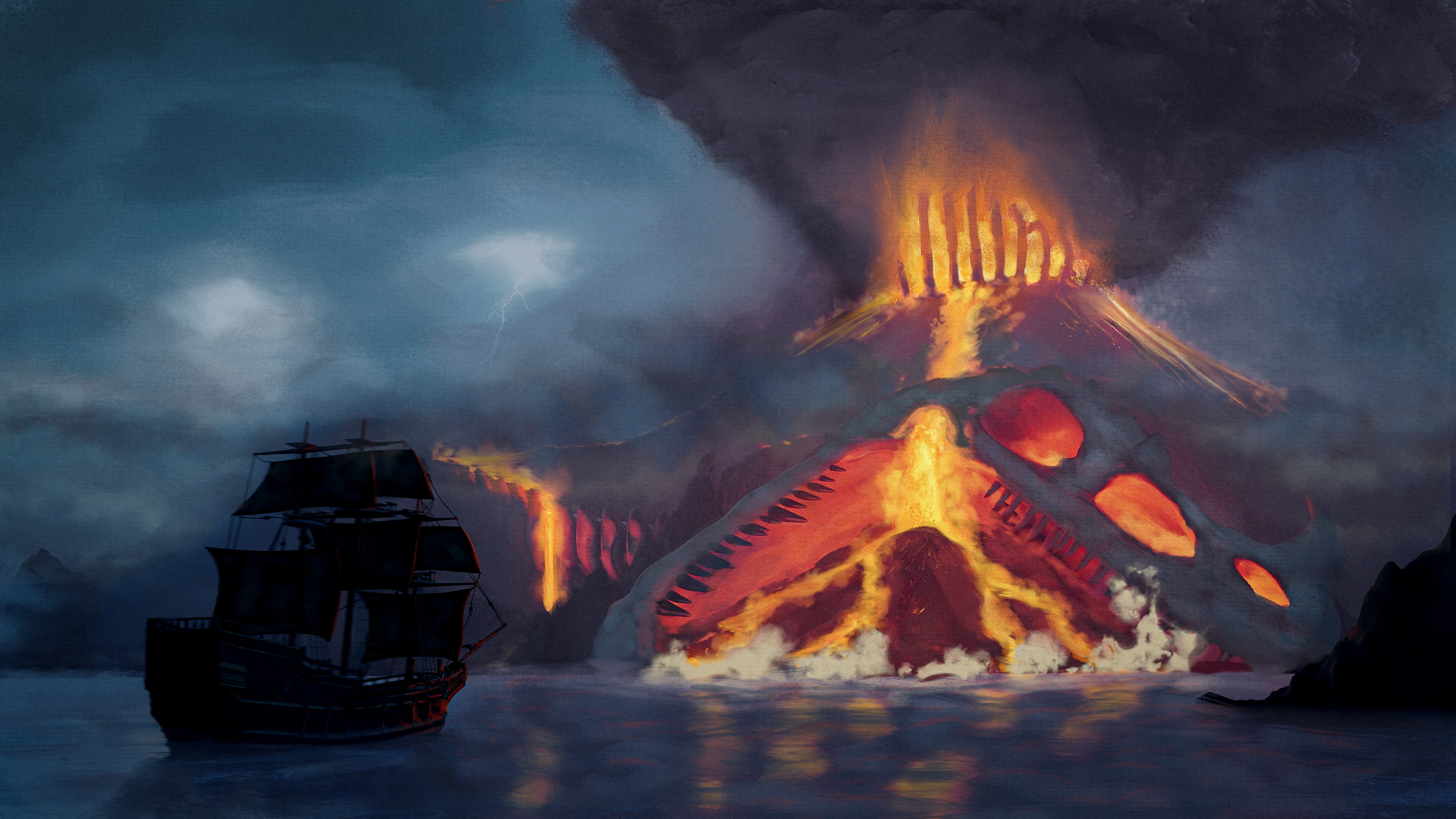 L'ile d'Isla Nublar a été créée suite à la mort d'un dinosaure gigantesque, capable de cracher des flammes. Son coeur ardent a réveillé le magma sous jacent et a créer cette ile cauchemardesque où seuls les plus brave pirates osent s'aventurer...