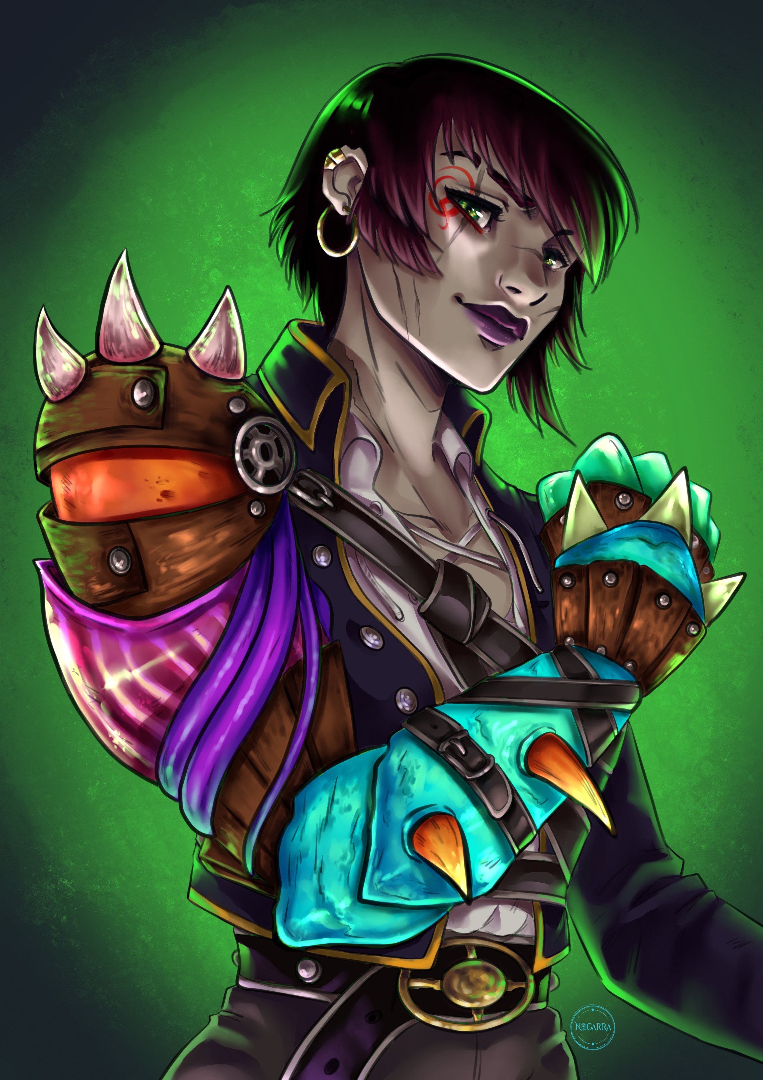Le design de Gropoings est venu assez facilement en lisant son histoire, et sa description m'a tout de suite fait penser à ce personnage d'Arcane que j'aime beaucoup, particulièrement dans la saison 2 " Sevika