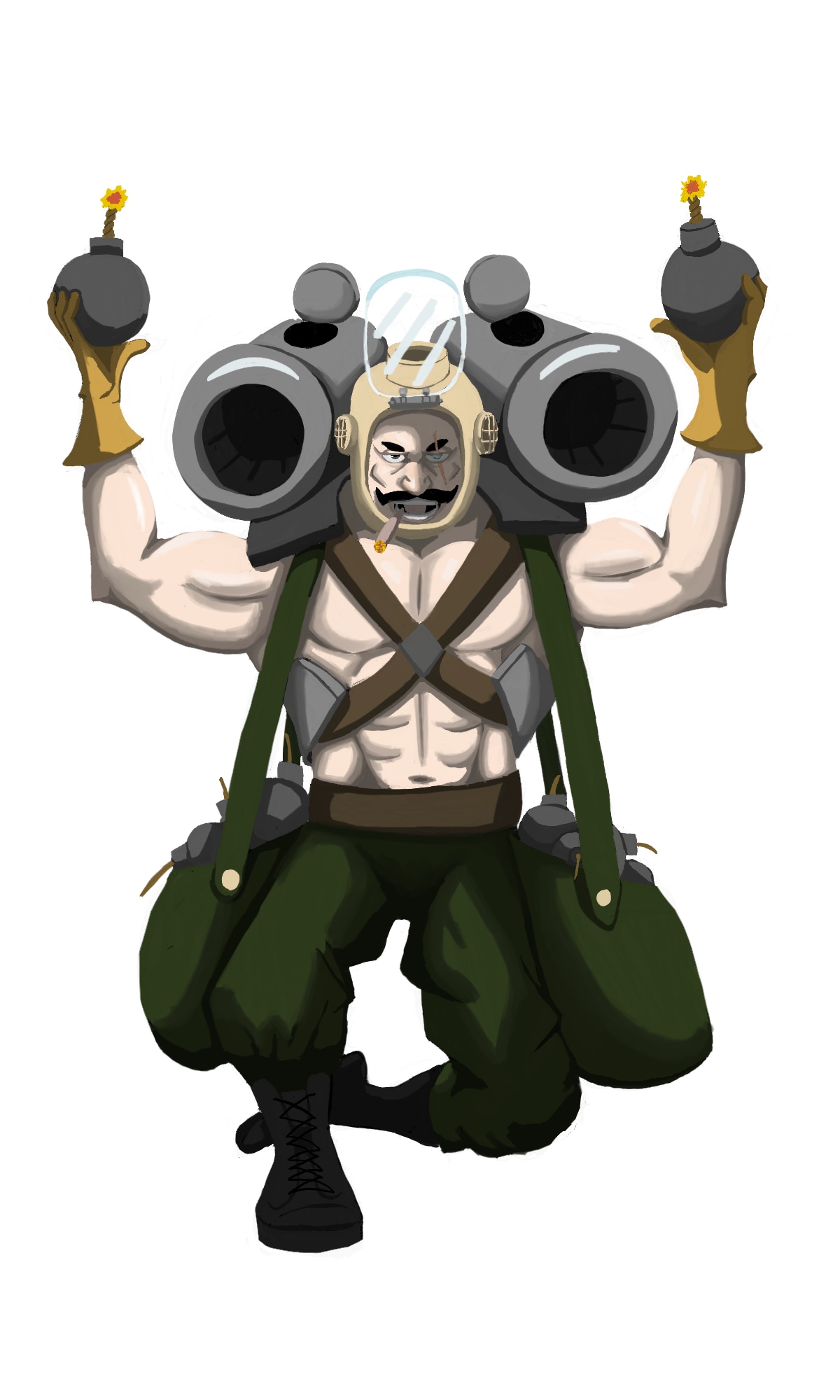 Pour Roger Boom-Boom, je me suis dit qu'un gars qui porte deux canons en permanance devait être ultra musclé donc c'était l'occasion de travailler mon anatomie.