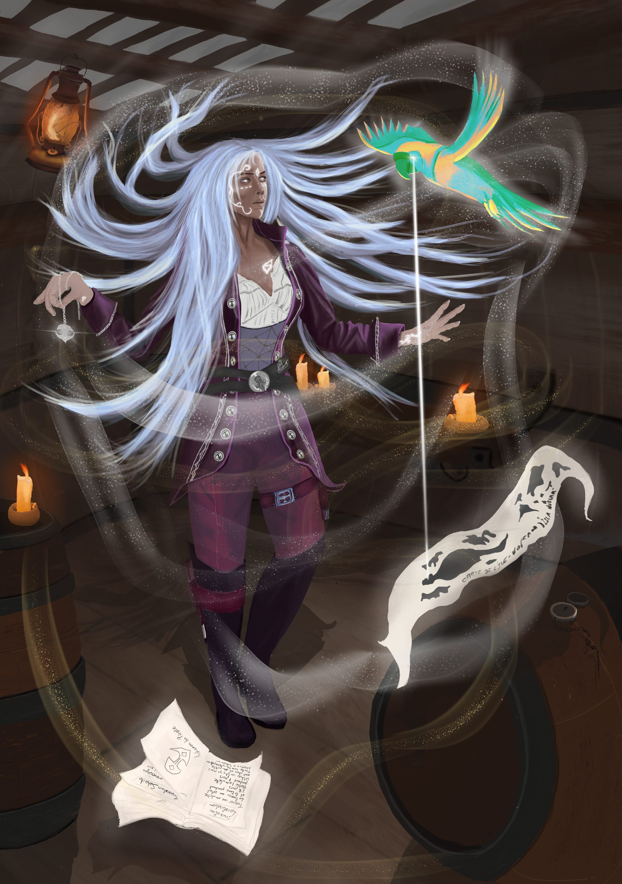 Sa grand-mère vient de lui transmettre le livre des invocations. Elle découvre qu’il existe un sort de Localisation. Elle utilise son amulette et son perroquet, indispensables au sort, afin de trouver la position exacte du trésor sur l’Ile-volcan d’Isla Nublar.