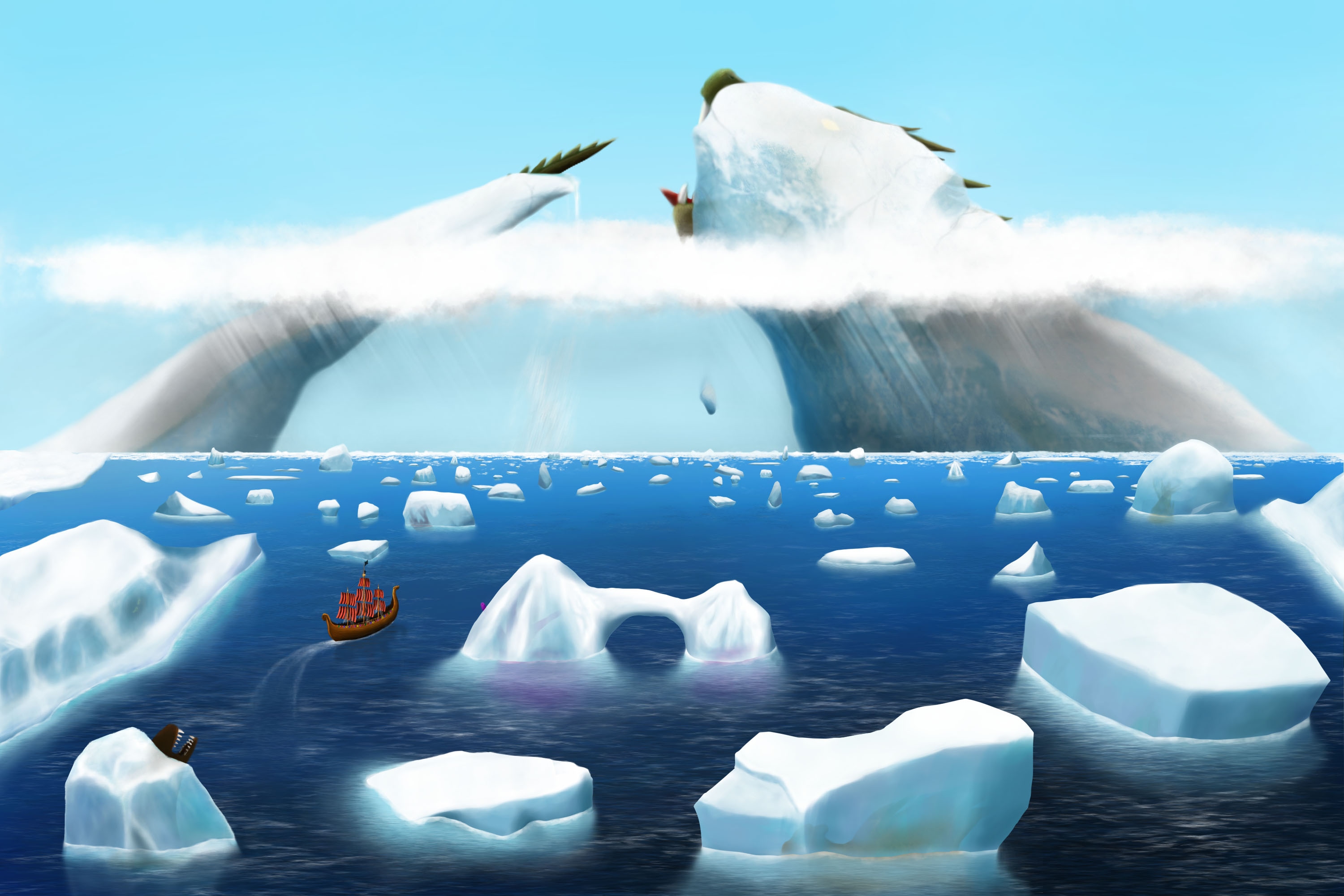 Habituellement bruyant, il règne un silence aussi glaciale que les eaux environnantes lorsque l'on aperçoit l'immense glacier emprisonnant Jörmungandr, ainsi que tous ceux alentours gardant divers créatures.