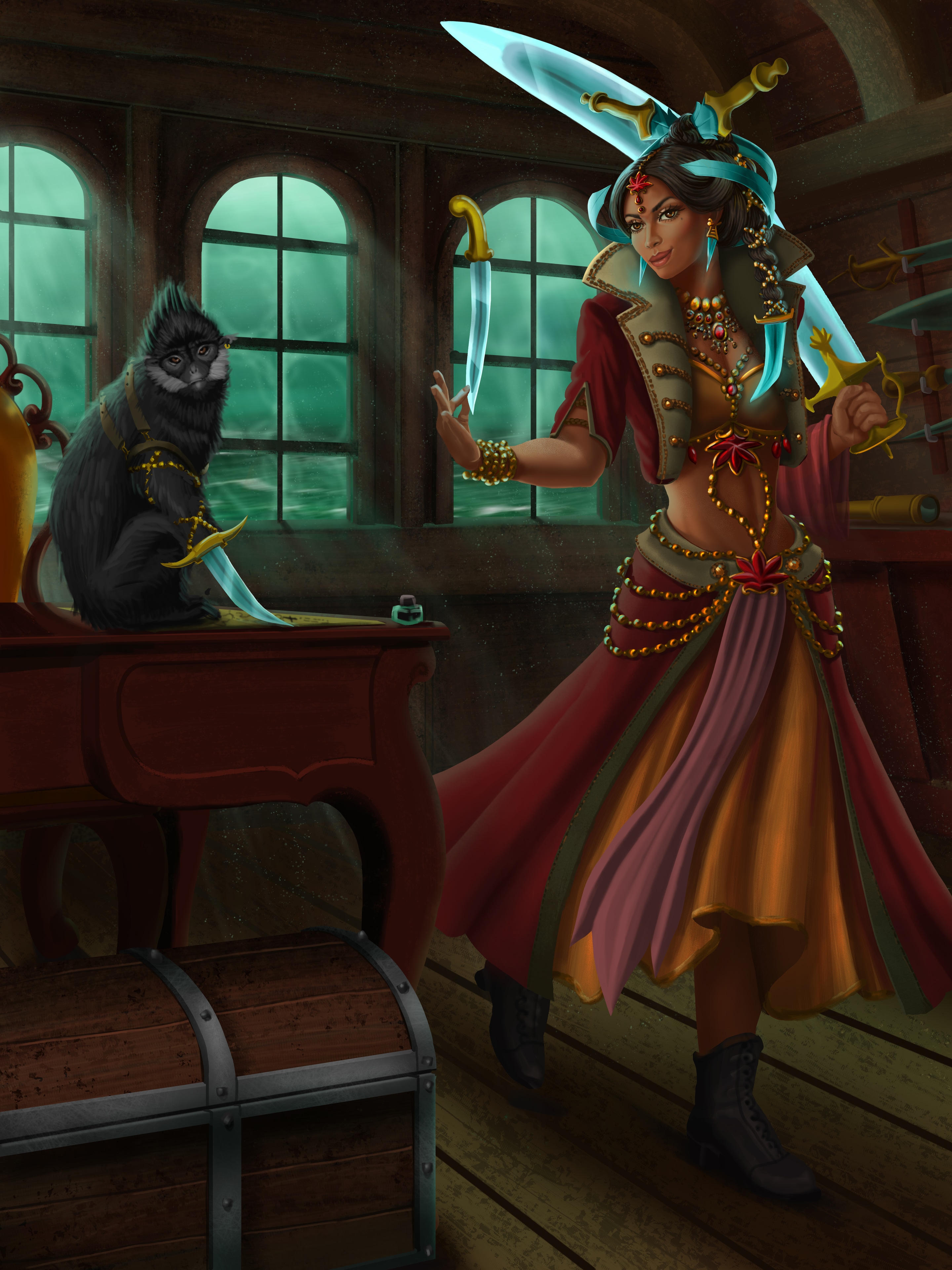 Hanuman, le singe qu'elle a sauvé plus jeune, est le seul à avoir le privilège d'utiliser les armes de la jeune femme. Très agile, il sait se battre, il est un atout dans les batialles. Il a même une prothèse-lame-bleue qu'il chérit, lui rappelant comment une inconnue lui est venue en aide alors que des barbares voulaient le découper pour le manger. Les lames virevoltantes faisaient de magnifiques lumières bleues et alternaient avec des touches de rouges, le plus beau spectacle qu'ait vu Hanuman de sa vie. Il prit ensuite la décision de rester auprès de cette femme et de l'aider dans sa quête de savoir et de puissance.