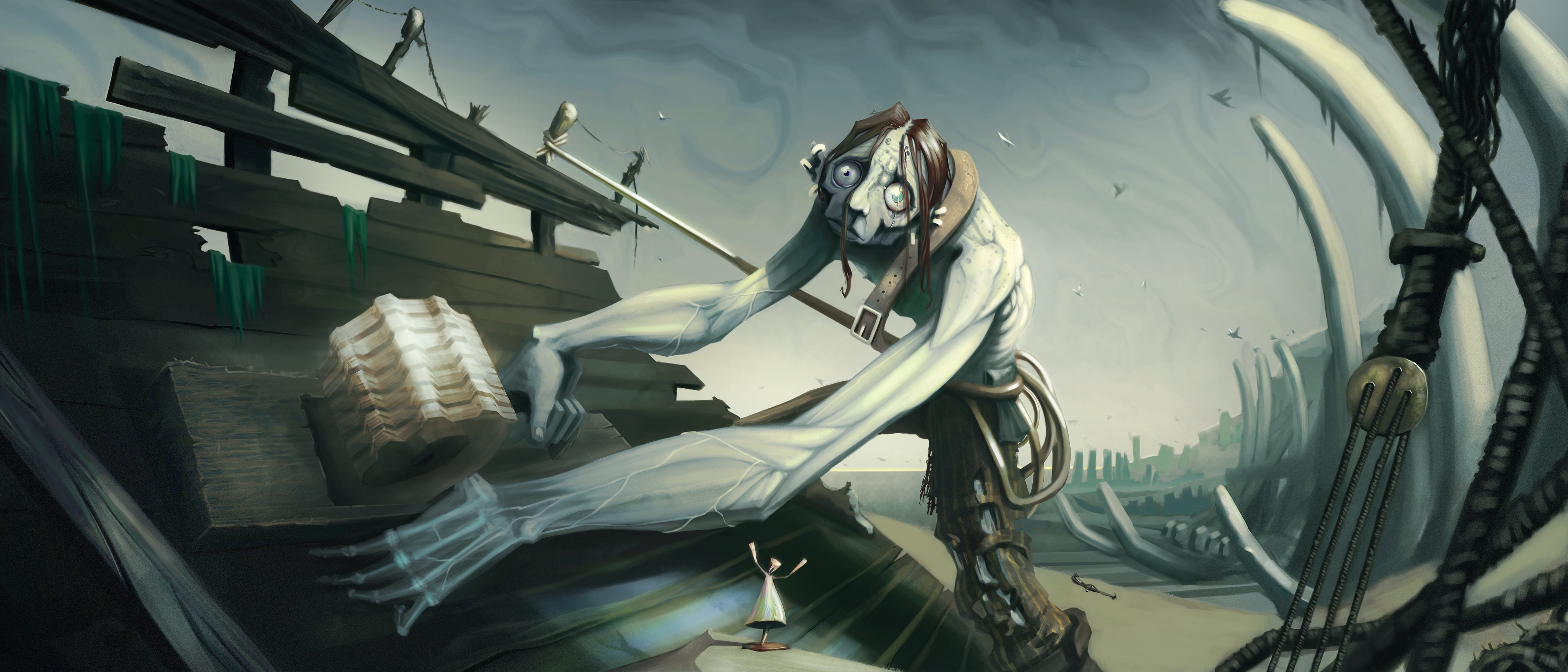 Le choix du Cireur s’est imposé comme une évidence. Ce personnage fait référence à une torture pratiquée durant l’âge d’or de la piraterie : le marooning. C’est pourquoi on peut apercevoir, sur sa droite, une arme à feu abandonnée dans le sable, symbole de cette condamnation silencieuse.