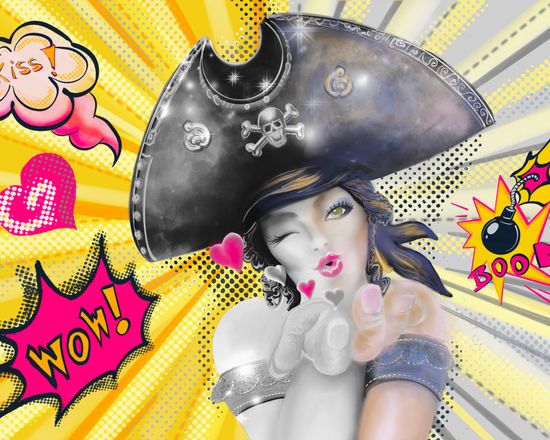 La Pirate Lame bleue et son singe, essayent de s'enfuir avec son sac de pièces d'or, bagues, anneaux en or, qu'elle à volé, mais les autres pirates du bateau essayent de la rattraper.... comment va-t'elle pouvoir s'enfuir par le haut du mât du bateau ?