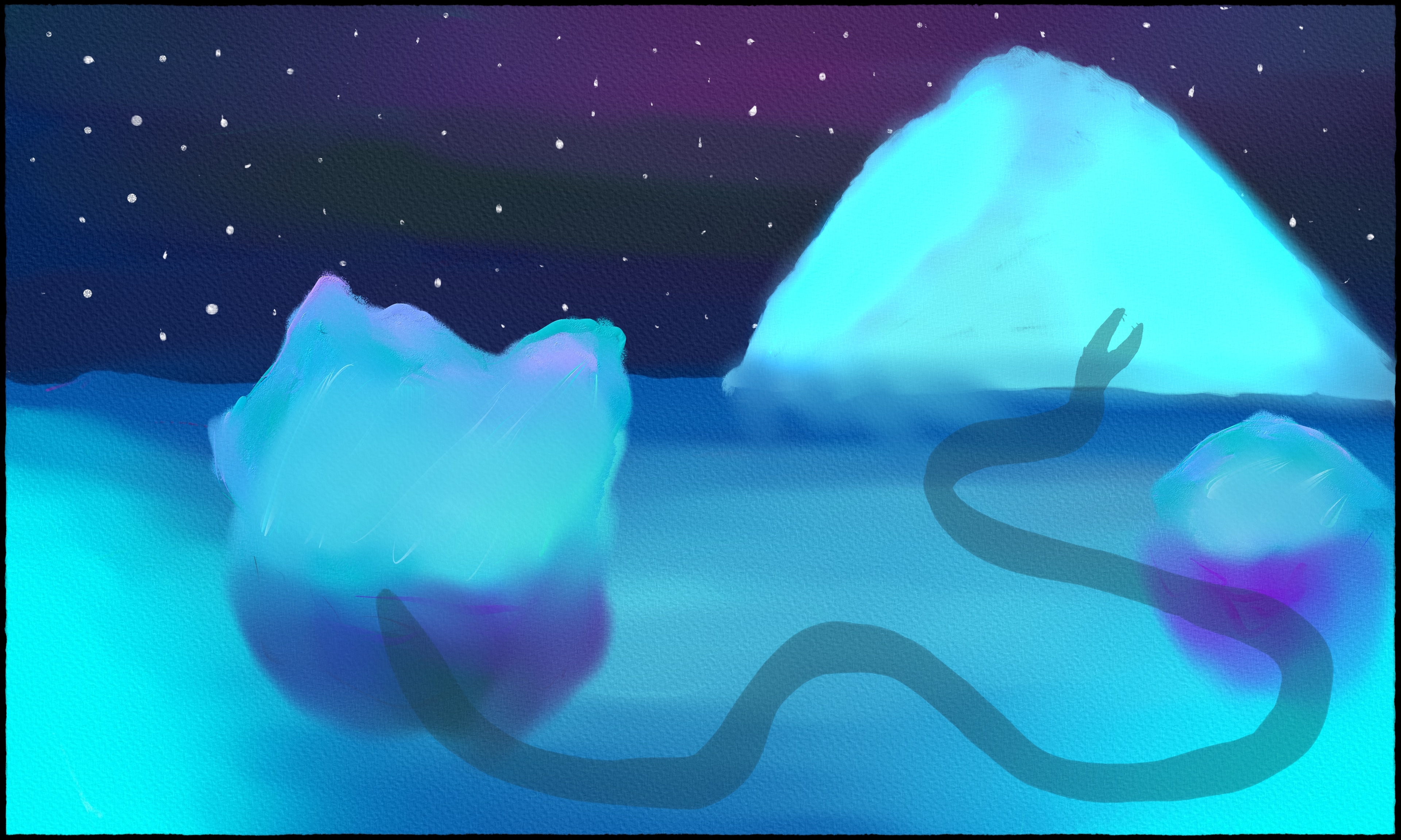 On raconte qu’au point le plus au nord de la mer de glace se trouverait un cimetière lugubre d’immenses icebergs flottants à la dérive… Parmi ces géants de glace se trouverait un iceberg haut comme une colline bien spécial qui aurait emprisonné Jörmungandr, le Serpent géant de Midgard. Un concept art dramatique montrant la découverte de ce lieu est attendu.