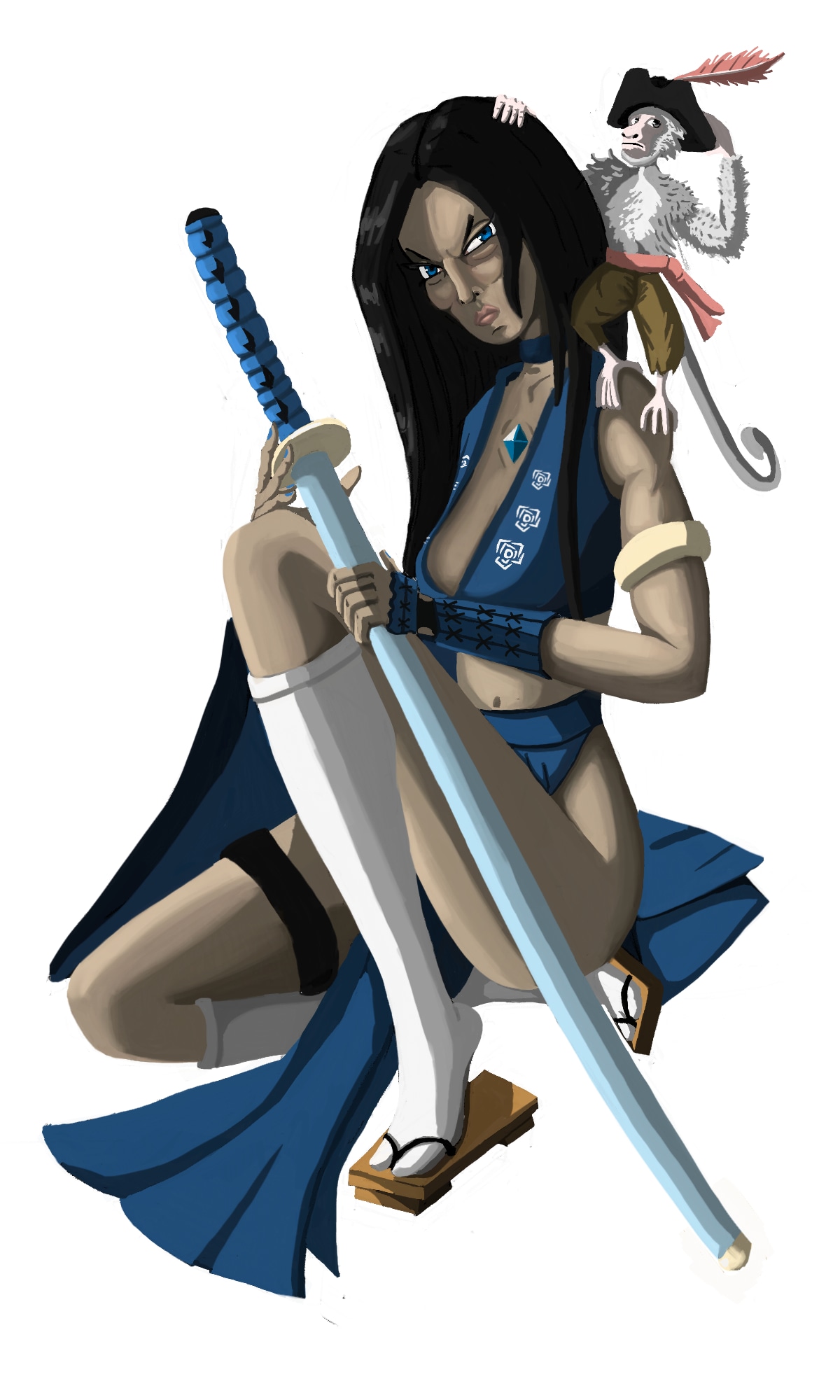 Pour Lame-Bleu, je me suis dis et si j'essayais de faire une femme maghrébine dans un style samouraï/Kunoïchi.