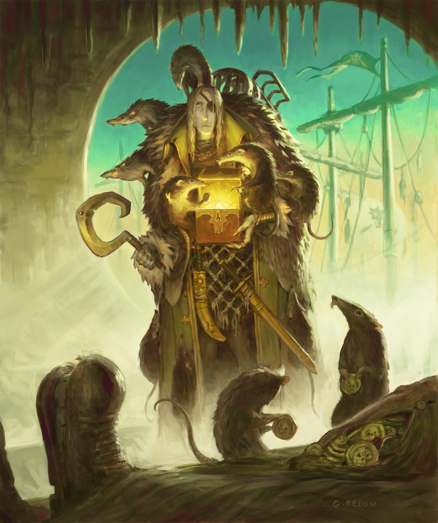 J'ai décidé de faire long nez le pirate tortureur d'enfants! Un peu moins porté sur la torture que sur son amour pour ses amis les rats, je trouvais que ça correspondait bien à l'aspect du perso, il faut reconnaitre une certaine influence de Nosferatu aussi! J'aime l'idée d'un enfant pauvre qui aurait volé une belle somme après s'être introduit sur un des navires de sa flotte. Alors qu'il se repose à l'abrit Long-Nez tel un croque mitaine vient le chercher lui et sa fortune!