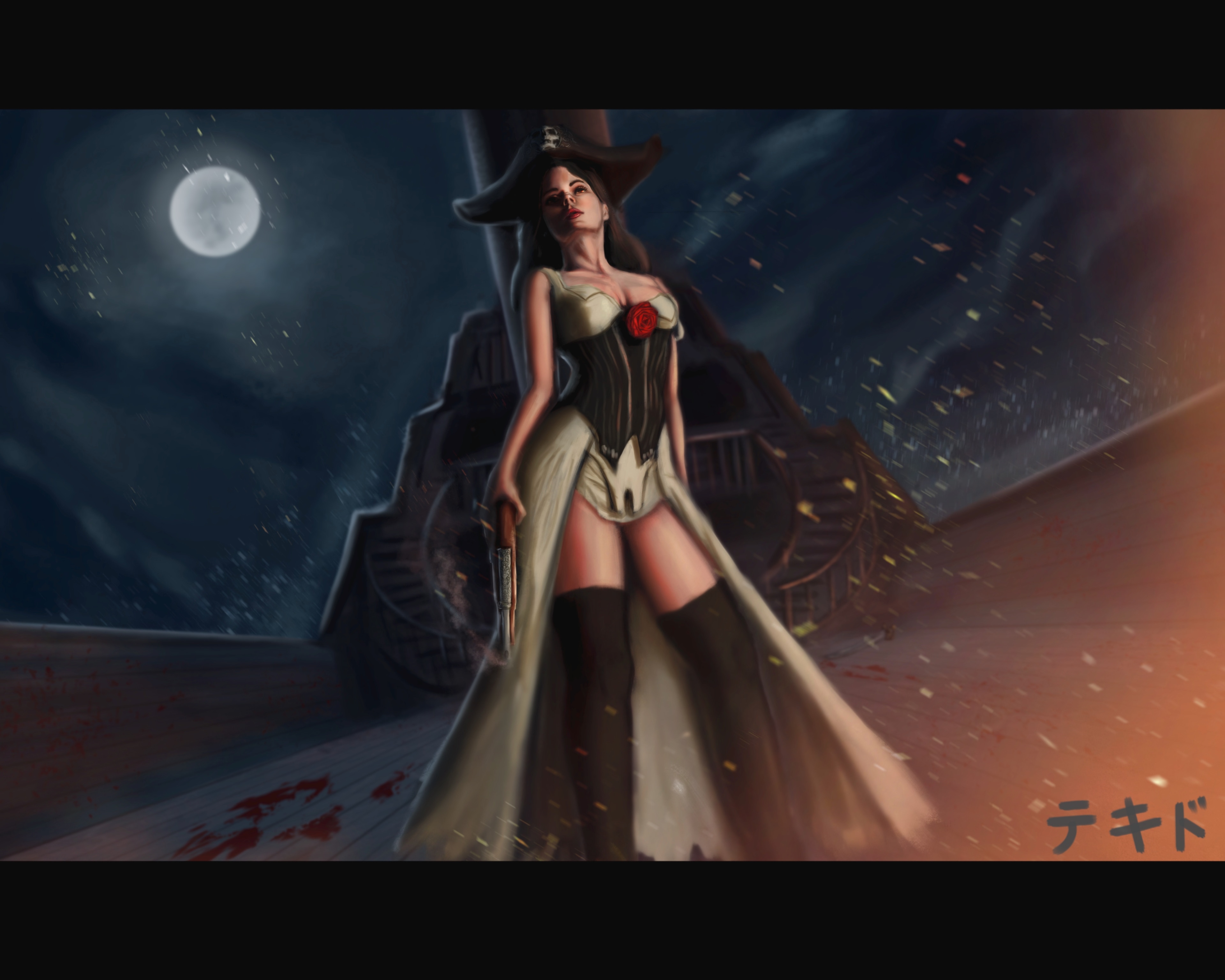Après avoir infiltré le navire de ses cibles, Katryna sème la mort parmi les membres d’équipage sans un bruit et tout en restant totalement immaculé après le carnage qu’elle vient de perpétrer. Il ne restera qu’une épave en flamme et les quelque taches de sang pour prouver le passage de la pirate la plus élégante et la plus dangereuse de cette mer.