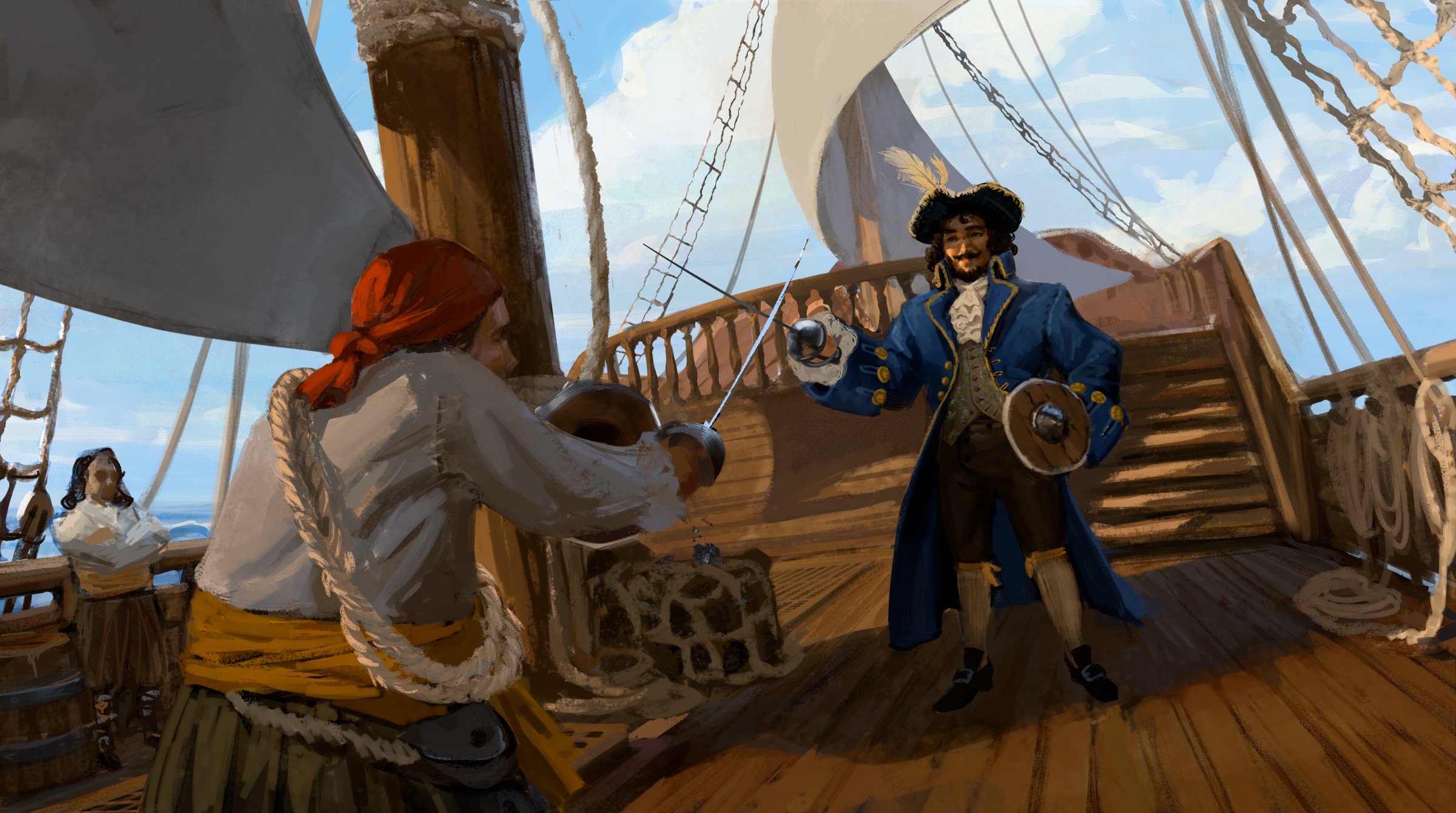 Thomas Pearl en duel d'entrainement avec un des ses matelots