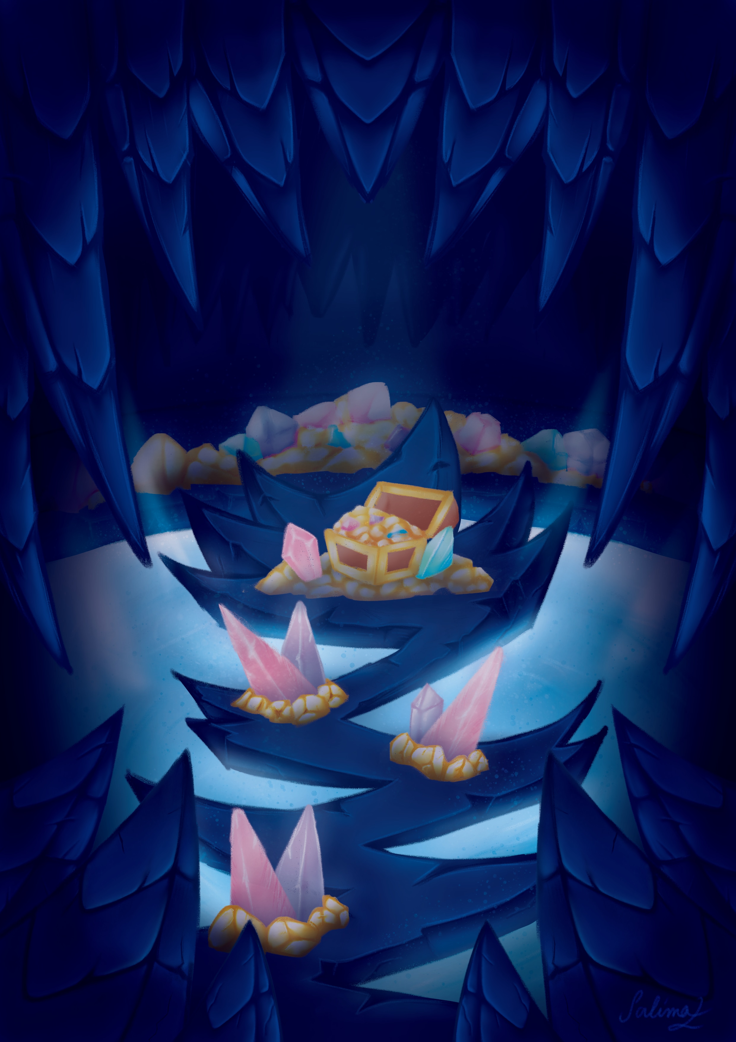 - Et aux centre on peut apercevoir le chemin avec des formes de pic étrange qui mène aux trésors