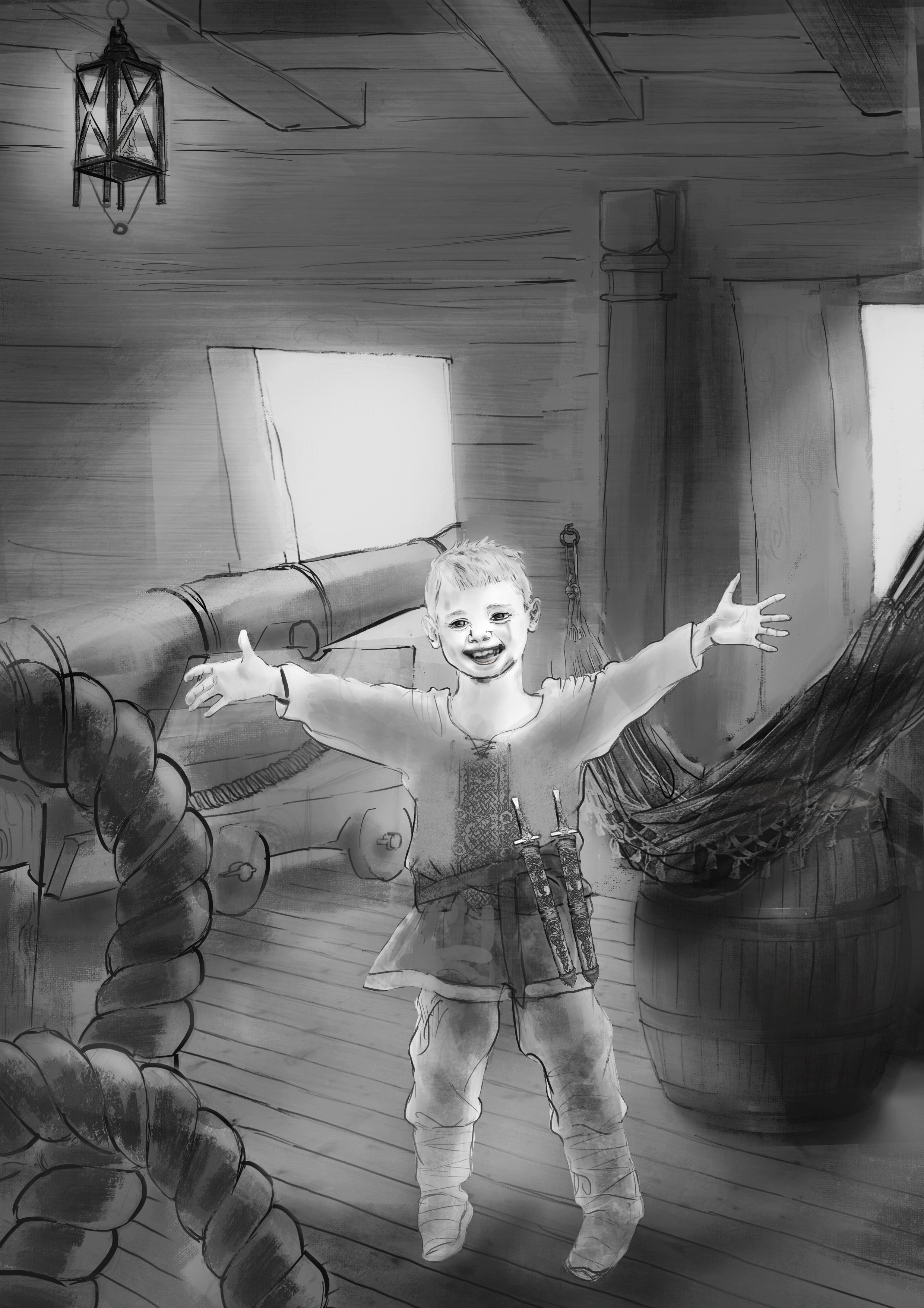 J'ai souhaité pour cette image faire un concept art 2D, très "hand painted". Plutôt rapide, juste en noir et blanc, qui laisserai apparaitre des coups de brush. Je n'ai pas résisté à la tentation de faire l'environnement en layout 3D dans Blender pour contrôler un petit peu la perspective et l'éclairage. J'ai utilisé des images libres de droit pour venir texturer certains éléments également.