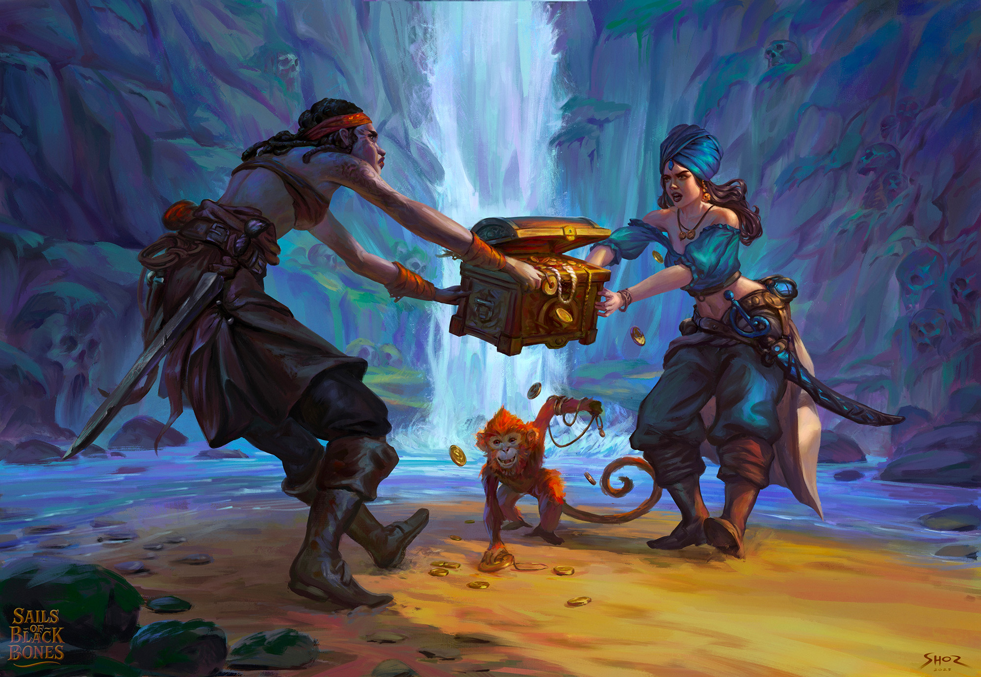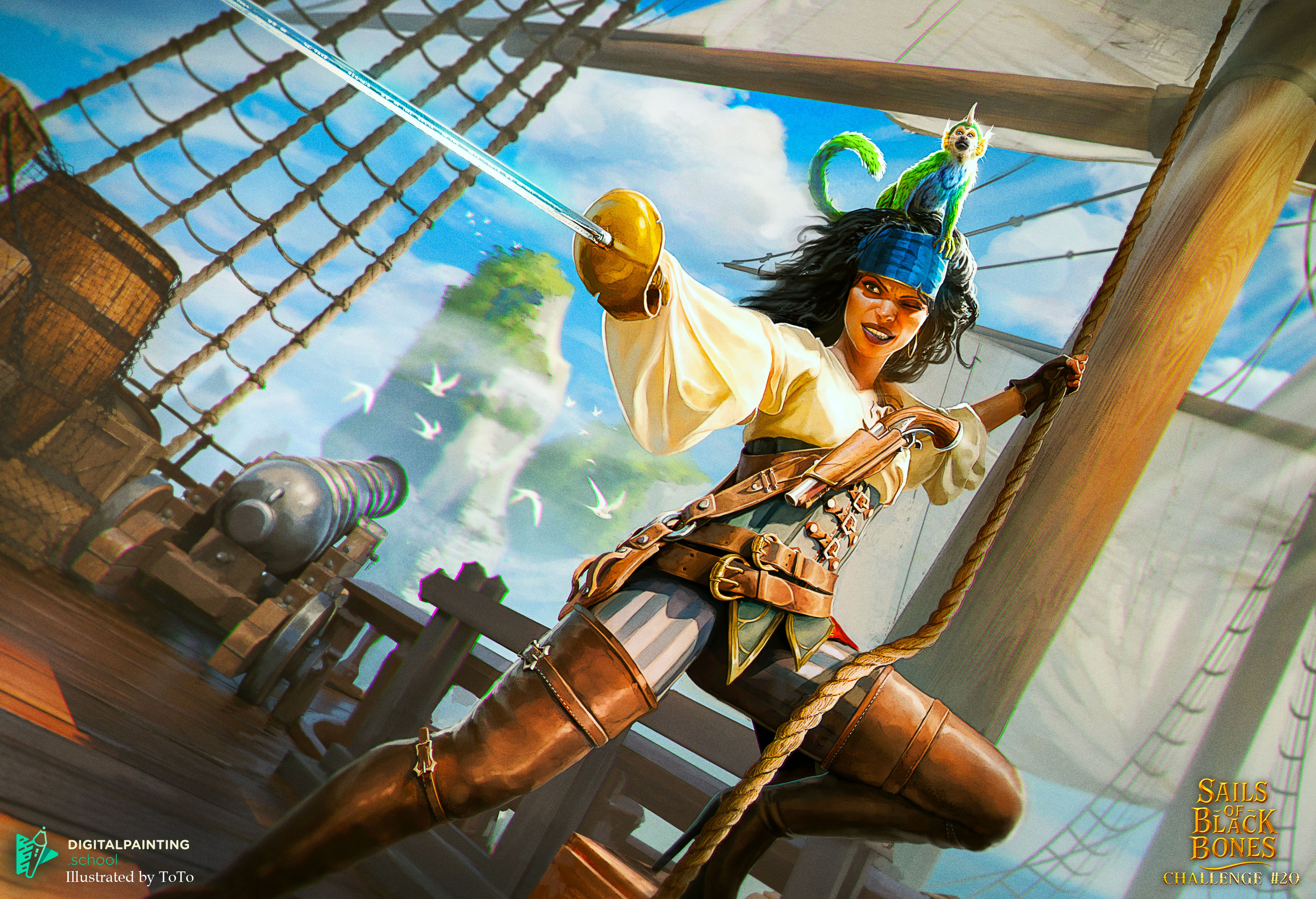 Nous proposions aux talentueux artistes francophones - amateurs comme professionnels - d'allier concept art et illustration pour créer un univers de pirates fantastiques. Le projet était ambitieux : suivre des briefs détaillés comme s'il s'agissait d'une demande client pour une nouvelle licence.