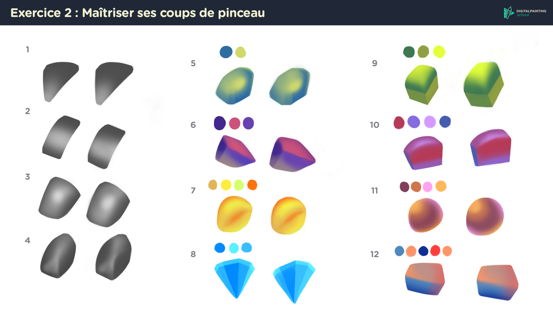Salut @Alban Epiphane😉 OK alors déjà, bienvenue à toi ! Et non il ne faut pas hésiter à partager son travail, au contraire 😉 Alors concernant ton premier exercice c'est plutôt chouette pour une première fois, dans l'ensemble on retrouve l'essentiel 👍 Après on voit effectivement que sur certaines formes ça été un peu plus difficile, mais c'est normal au début, il y a pas mal de choses à prendre en compte, la tablette, le stylet, les réglages des brushs etc.. 🙂 ici par exemple, il faudrait venir sculpter ta pièce avec une gomme dure, et tourner ton document pour avoir plus de facilité à te rapprocher de sa forme de base 🙂 Même chose pour la 2ème, il ne manque pas grand chose, c'est juste un peu plus de précision sur la forme 🙂 Et concernant l'exercice suivant, c'est franchement chouette au niveau du résultat 👍 ça manque un peu de précision là aussi sur les arbres au fond ici sur la botte, tu pourrais assombrir davantage l'intérieur pour obtenir plus de volume sinon au niveau de ces coups de brushs, en terme de couleurs/valeurs, c'est pas mal, on pourrait booster légèrement la saturation, mais à la limite ça va ^^ c'est plus au niveau des formes que là on pourrait peaufiner davantage ^^ mais bon pour un premier digital painting, c'est plutôt cool 😉 Allez continues comme ça c'est bien ✌️