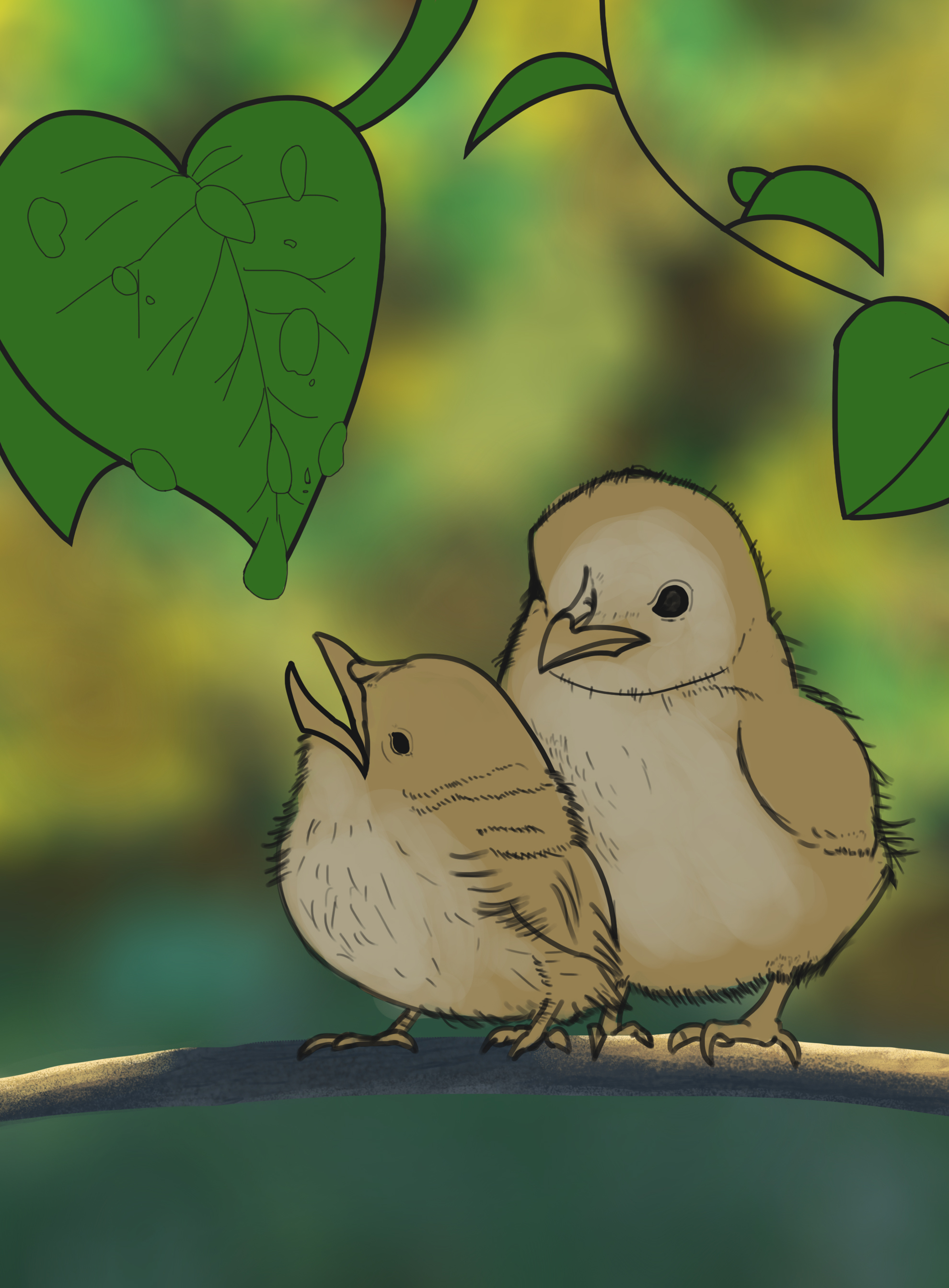 Voici l'exercice 6 avec l'exercice des oisillons : j'ai trouvé l'exercice agréable à faire, j'ai essayé de le faire en regardant le moins possible la vidéo pour mettre en pratique la méthode de croquis moi même et ne pas suivre "trait pour trait" les explications.