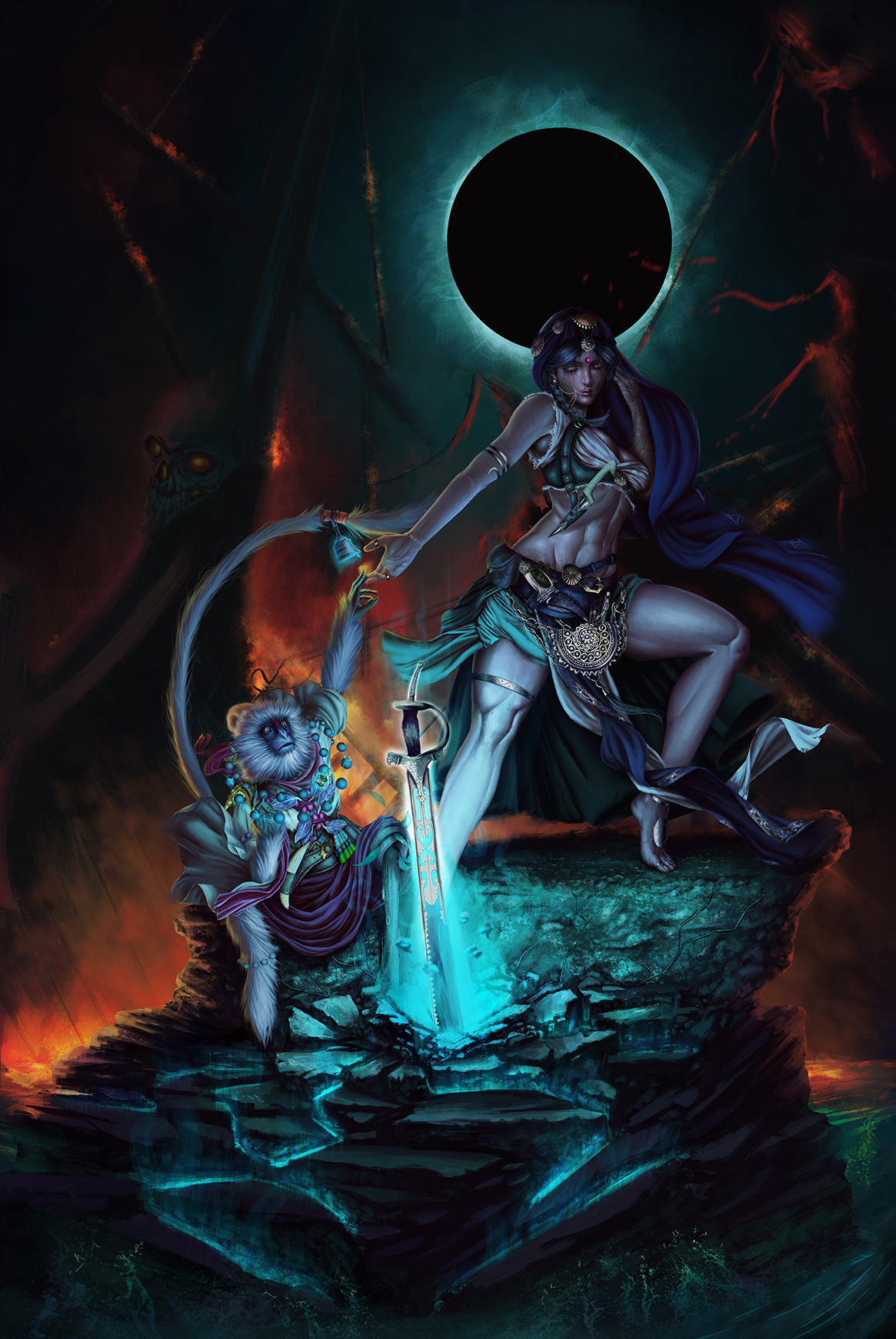 Hi ! Dernier update pour le moment je vais retoucher quelques éléments avant de poster la version définitive (entre autre le manche de l'épée, le singe et quelques détails sur lame bleue) mais en attendant j'attaque le décor pour la deuxième participation ! -