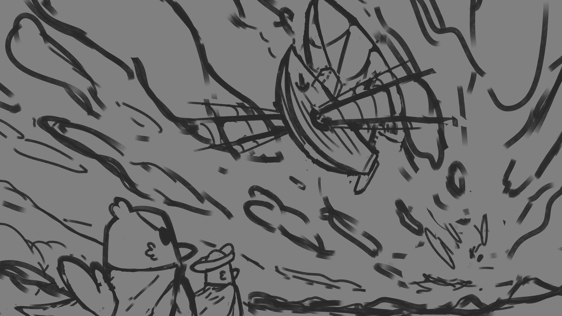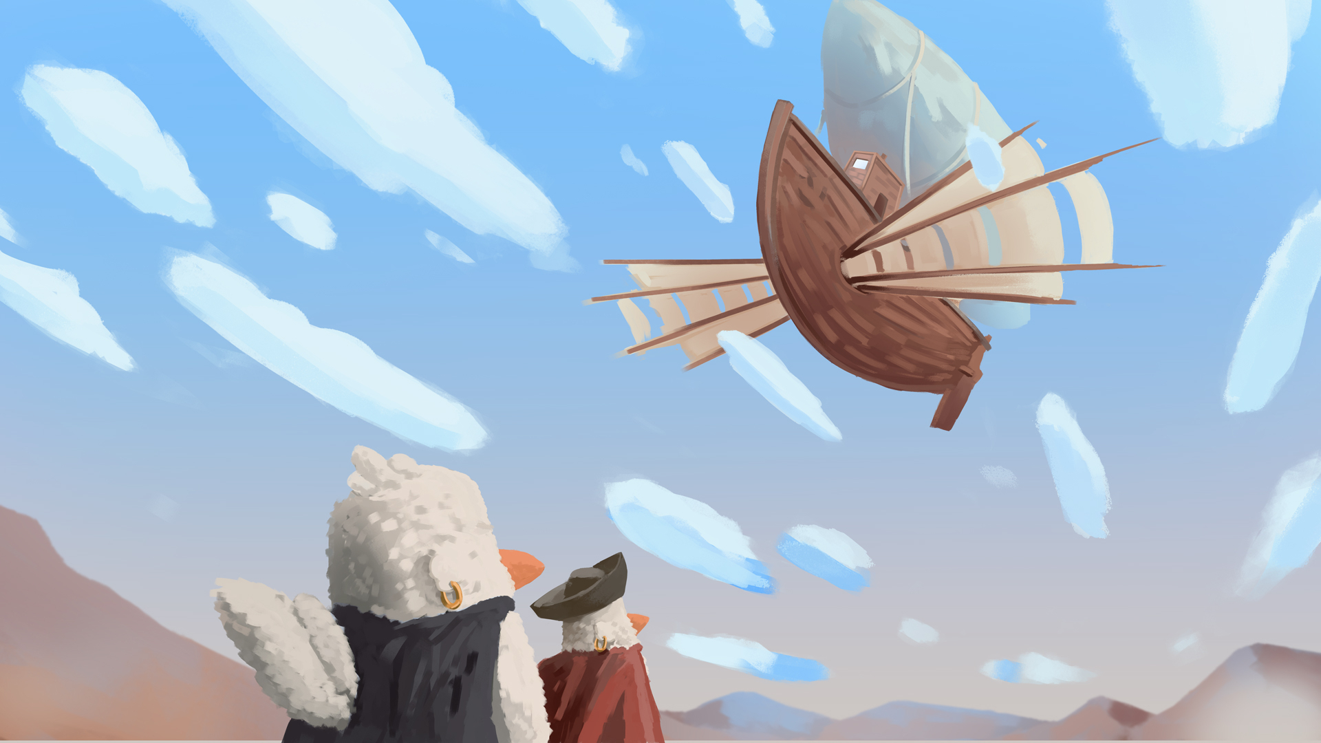 Hello! Je vous poste ici un petit WIP de ma participation au challenge. C'est l'histoire de deux pingouins qui décide de louer un rafiot en vue d'aller en haut ciel braquer la banquise pour se faire du poisson. Ils décident de prendre une recrue pour rester à la barre et surveiller le bateau pendant leurs emplettes en vue du larcin. Cordes, poudre à canon, canne à pêche, tout l'attirail d'un pirate quoi. La recrue est tellement motivé et investit qu'elle décide de faire plaisir à l'équipage en peignant une tête de mort sur le dirigeable en attendant ses "coéquipiers". Et de faire un drapeau de pirate pour le secouer avec beaucoup de zèle sur le pont en les voyant revenir. C'est donc avec très grande joie qu'ils peuvent découvrir et apprécier le nouveau design très tape à l'oeil de leurs embarcation. WIP: The sketch Wip 2: The couleur The final: "La Recrue" Merci à vous et à vos superbes réalisations!