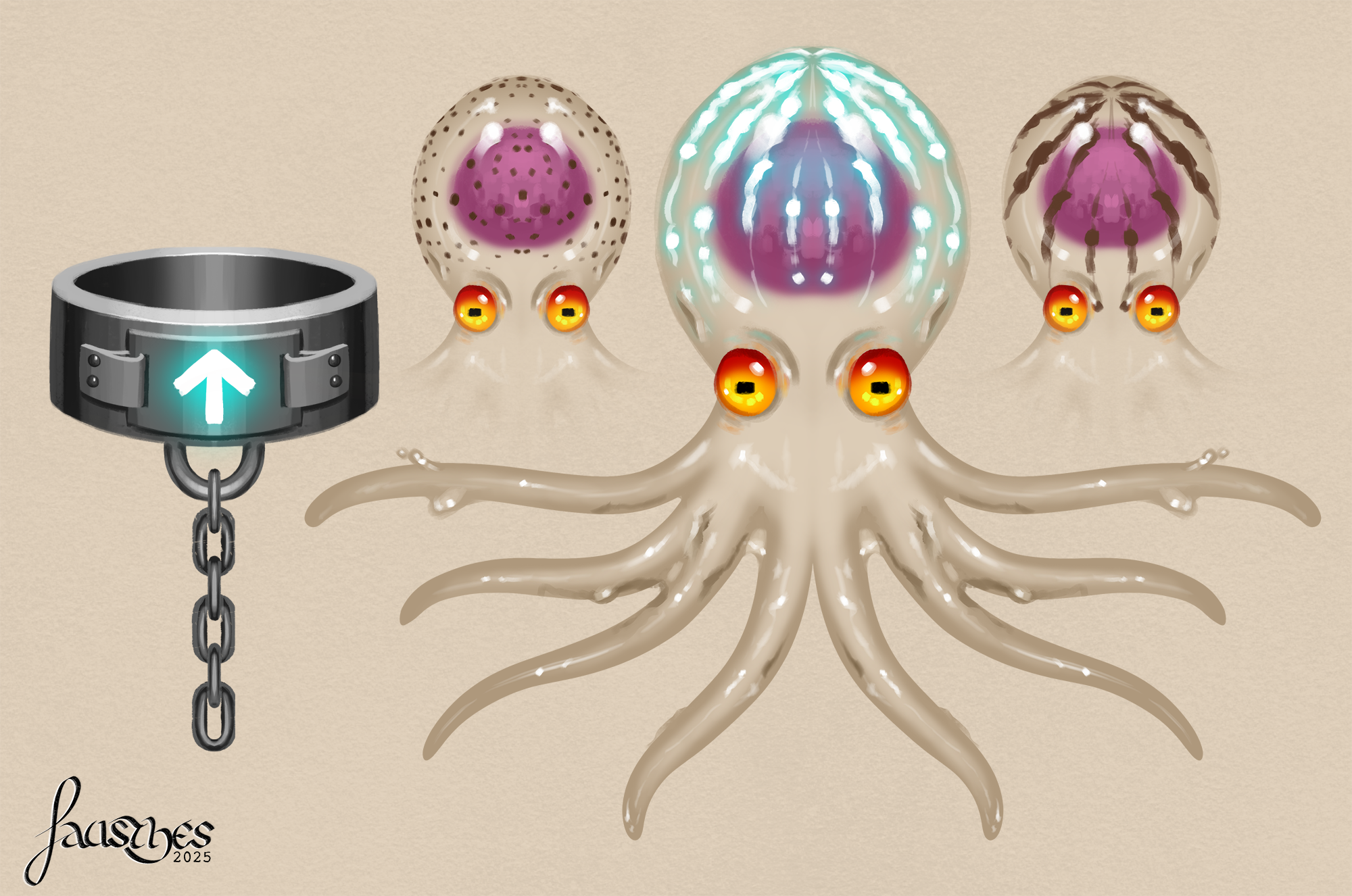 Bonsoir ! Petite update ! J'ai redéfini la forme des bracelets de mon Kraken, et j'ai cherché un peu quels patterns il pourrait avoir sur sa tête ! Aussi j'ai décidé de partir sur quelque chose de plus mignon qu'initialement ! -