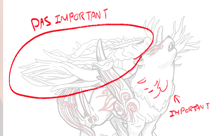 Coucou @Sunic'est du très bon taff en général, si j'ai un feedback pour toi ça serait que tu manques de hiérarchie dans ta façon de dessiner les détails. Tu en mets plein là où ça ne sert pas à grand chose, et tu en oublies là où c'est important Pour savoir si c'est important ou non, regarde l'image de loin et observe le centre d'intérêt (très souvent la tête), plus on se rapproche de l'intérêt et plus ça mérite des détails, à l'inverse plus on s'éloigne et moins il faut en mettre. Pour ton croquis perso, la compo est plutôt cool, c'est du bon travail, ce qui fait que tu as du mal à continuer c'est que ton croquis n'est pas encore terminé, il faut que tu réfléchisses comment les plantes sortent du sol, met aussi peut être quelques plantes au premier plan si tu veux rendre le tout + immersif. Développe c'est quoi exactement la source de lumière, est-ce que c'est une plante lumineuse ? Un artéfact magique ? Pour les herbes derrière c'est un soucis de hiérarchie aussi, ils sont pas importants donc ne les détaille pas, fait exprès de mettre moins d'herbes, moins de feuilles. à l'inverse ajoutes peut être des cailloux, et des des petites herbes juste en dessous de tes personnages. Tu verras la colo plus tard, concentre toi sur la lisibilité et la compo de ton croquis 😉 Bon courage !