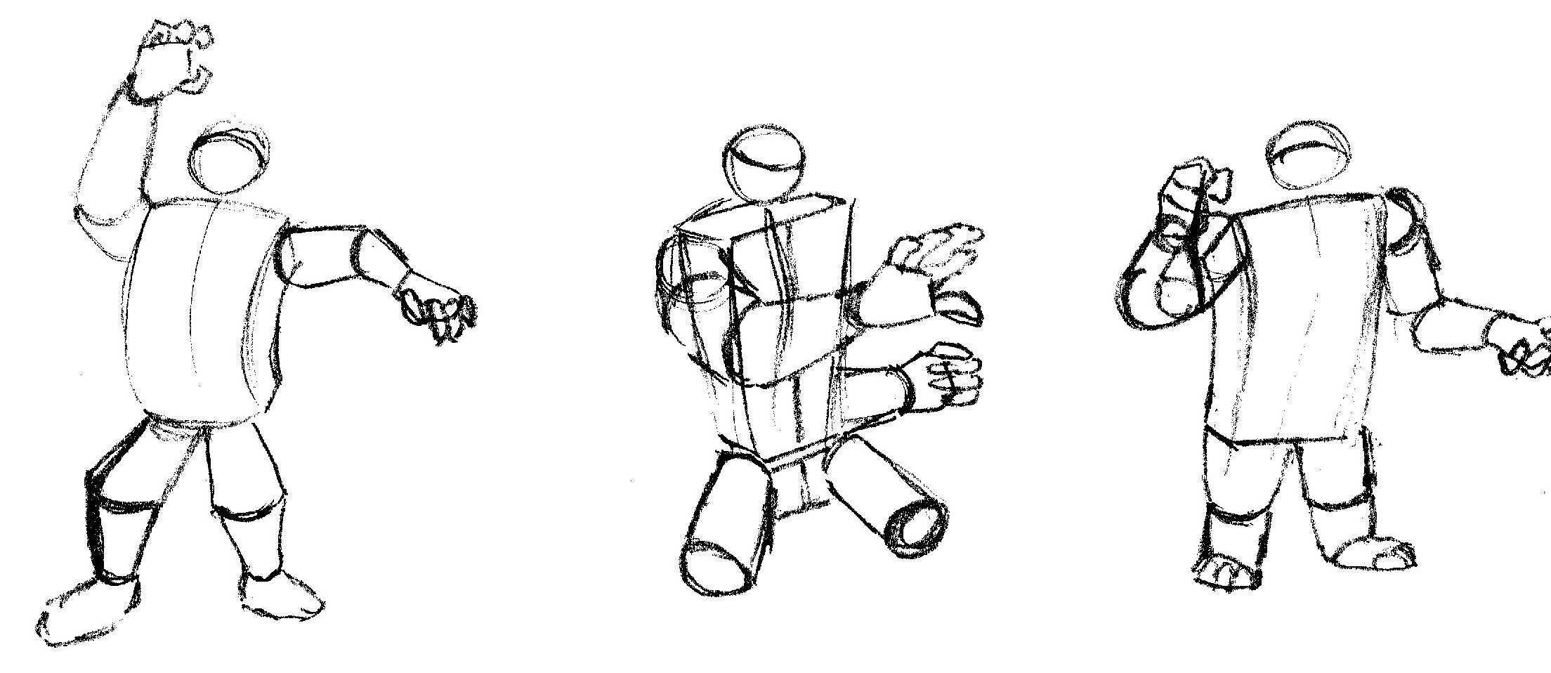 4. Salut, voici le jour 13 (15aine de minutes, gesture + formes 3D avec environ 5 minutes par perso) :