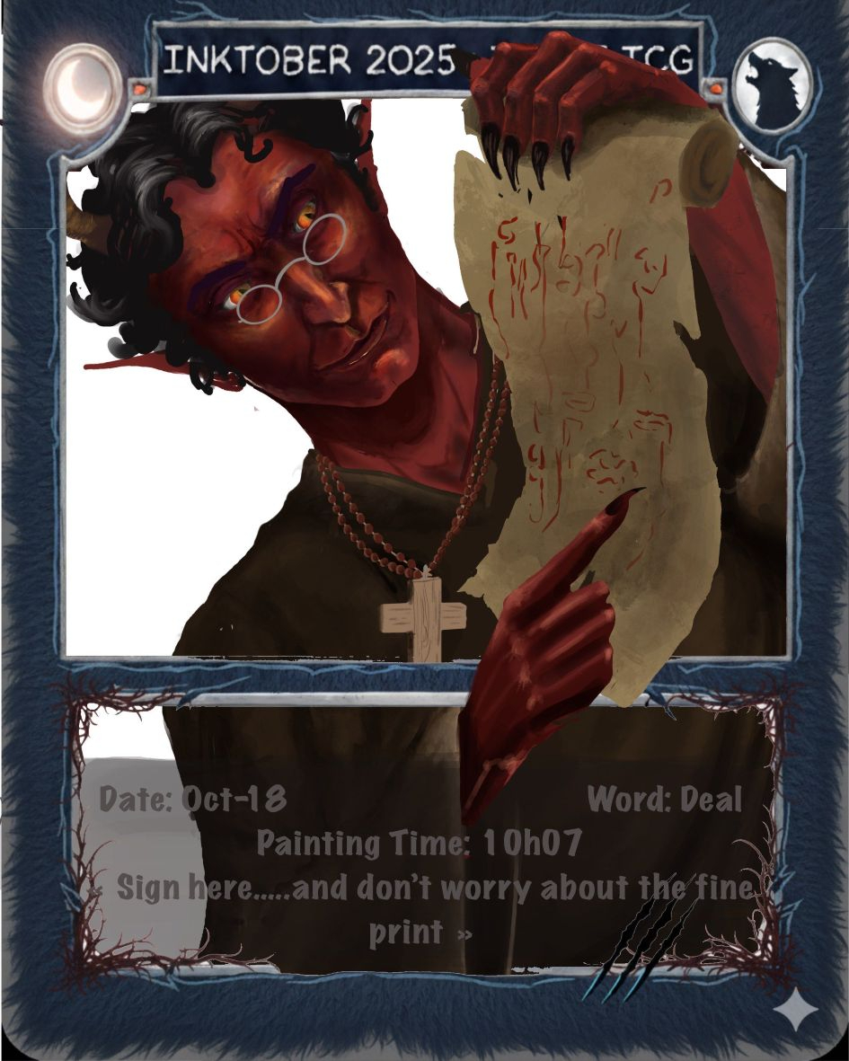 Hello tout le monde ! J'ai accumulé beaucoup de retard, avec la semaine de partiels c'était impossible d'avancer dans l'inktober.... Heureusement j'ai pu rattraper mon retard en off je vous partage ça toute à l'heure 😉Et surtout un grand bravo pour vos sublimes créations et votre régularité 💪ça me motive plus que jamais à continuer. Pour une création déroutante, je crois que je ne peux pas faire mieux : ça fait vraiment bizarre à l'œil de voir ça au milieu de tout ces dessin , avouez vous ne vous y attendiez pas 😂 @fabioJe trouve qu'on a une idée similaire, bien joué @daffTrès cool l'illusion d'optique @GopperusIl me fait penser à Monsieur patate quand on lui place ses membres dans le désordre (je ne sais pas si tu as connu ce jouet) @marina_sTrès cool comme d'habitude @stefouMagnifique @DiamonesTrop mignon @fred21Ça me fait penser aux backrooms, j'aime beaucoup le rendu. P.S. si Stefou est hors sujet alors moi je mérite d'être banni !😅 @GuismoTrop cool ! @HaptoMaiSimple et efficace @yubelsÇa sent le début du film d'horreur... Très cool @yurinomaiJ'aime beaucoup @RockenrollaBeau travail la main est très cool @HaeresisExcellent le rendu est top @1 neasTrop cool le perso, très beau travail @EtiennazeOh magnifique ! @iselderblaickC'est vraiment magnifique ! J'adore l'ambiance qui se dégage de ce dessin @Image.In.RBien joué, j'aime beaucoup l'idée @Carolines_of_NatureTriste réalité....Le dessin est très beau par contre @JerazelWahou ! Entre la perspective à moitié fish eye et l'anatomie, franchement chapeau ! L'interprétation que j'en fait est que c'est un patient qui fait une EMI (expérience de mort imminente) et qui se demande ce qu'il fait ici @PantoufTrop cool @bussi29Très drôle bien joué @WalvynTrès belle illusion d'optique :