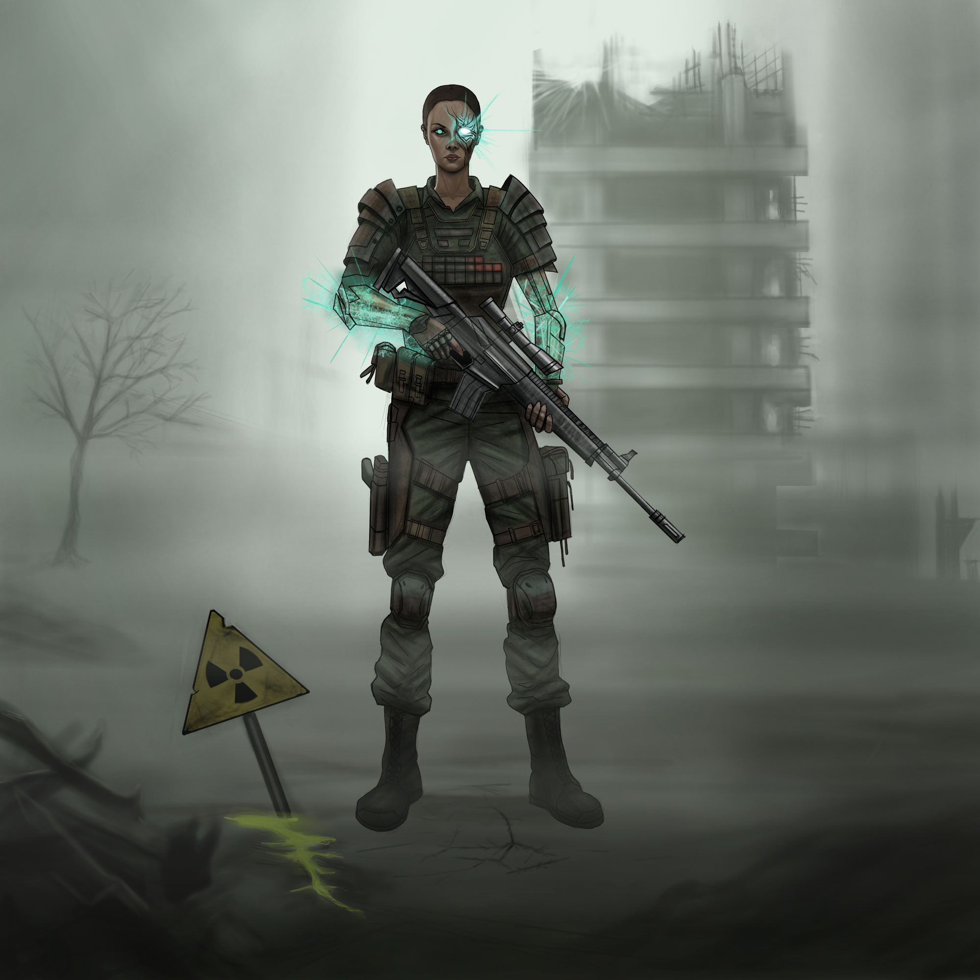 Salut @raza, merci beaucoup ! Ça fait plaisir si le line te semble propre, j'essaie d'être plus rigoureux sur mes calques pour gagner en clarté. Ravi que l'astuce Krita te serve, on est dans le même bateau pour l'apprentissage du soft ! J'ai découvert une autre qui va te plaire et encore plus rapide... Le brush Shapes fill dans Krita - [Tuto Krita] Et ta Hyène mutante claque bien. Le côté 'hérisson' avec les piques rend le design super agressif et tes premières valeurs posent déjà une sacrée présence. Hâte de voir la suite @Virg , T'inquiète, la 'glandouille' fait partie du process créatif. Ton perso a déjà une super présence : le gilet bleu se détache hyper bien et l'idée de la mutation sur la main droite est top, ça intrigue direct. Hâte de voir tes lumières finales ! @Mirahat, quel concept incroyable ! L'idée de la fusion avec ses hommes est aussi glauque . Mais mention spéciale pour le crop-top, ça fallait l'oser ! x) @stefou, Toujours aussi impressionnant. Merci pour le partage des étapes, c'est super instructif de voir comment tu amènes la lumière et les textures sur ton mutant aquatique. Le rendu final dans les égouts est une vraie claque visuelle. De mon côté, j'ai enfin tenté la couleur sur une illustration complète après mes deux précédents briefs. Je commence enfin à sortir du chaos dans l'organisation de mes calques Krita pour trouver une structure plus propre et agencé le tout à l'aide de groupes. Voici ma sentinelle en zone contaminée, focus sur l'atmosphère et les contrastes technologiques.