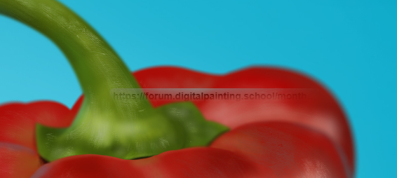 Pour l'exercice du poivron c'est vraiment top ! bien joué pas grand chose a redire , juste deux trois choses pour chipotter 😉 ! ici tu peux accentuer bcp plus son ombre portée on ne la distingue pas vraiment pour le moment par rapport au sol ici il manque juste une une lumière plus rouge clair plus saturée dans le creux qui est pour l'instant trop dans une teinte grisâtre délavée Sinon c'est good continue !;)