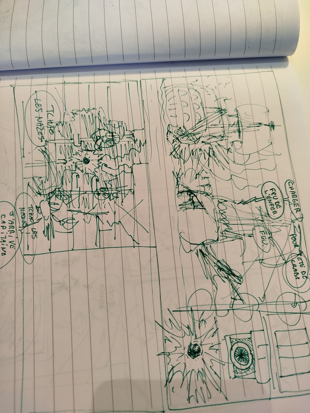Salut @Ludostudying, C'est sûr que ce genre de petit passage à vide n'est jamais agréable mais pour le coup ici, je pense pas que ce soit bien grave. C'est vraiment l'équivalent du sportif qui s'arrête de s'entrainer pendant 3 semaines et qui lorsqu'il reprend, a l'impression d'avoir une condition physique éclatée 😉 Alors qu'en fait, c'est simplement l'affaire d'une ou 2 séance pour revenir au top. C'est juste un peu de rouille qui s'est accumulé sur sa forme physique mais qui est balayée par la reprise de l'entrainement en 2-2. C'est pareil pour le dessin : ton niveau n'a pas disparu, il est toujours là intact mais recouvert d'un peu de poussière qu'il faut dépoussierrer pendant 1 ou 2 séance de dessin avant que ce soit comme avant (voir mieux) 👍 Ce n'est pas du tout un soucis que tu partes sur des sujets différents pour t'entrainer aux croquis. Surtout si c'est un thème ou des sujets qui te tiennent à coeur. C'est comme ça que tu allies au mieux "effort" et "plaisir". C'est un peu la recette parfaite ! Je suis sûr que si tu avais dû dessiner des fenêtres, ta planche de dessin ne serait pas aussi remplie ahah ! Pour ce qui est du workflow, tu fais bien d'abandonner cette idée de réussir ton dessin parfaitement et avec un rendu final en 1 seule fois. Ce n'est pas réaliste comme approche et même contre-productif. Les gens qui peuvent se le permettre sont des dessinateurs qui ont 15-20 ans d'expérience et qui dessinent les mêmes sujets depuis très longtemps. Et même là encore, on pourrait tout à fait imaginer que leurs résultats seraient encore meilleurs s'ils passaient par 2 ou 3 étapes intermédiaires. Donc, en l'état, tes croquis sont tout à fait solides. C'est du très bon travail ! Je te laisse voir si tu veux les pousser jusqu'au rendu final pour ceux qui sont encore un peu rough, ou bien passer à la suite. Je n'ai rien de particulier à redire ici 👌 Bonne continuation à toi !