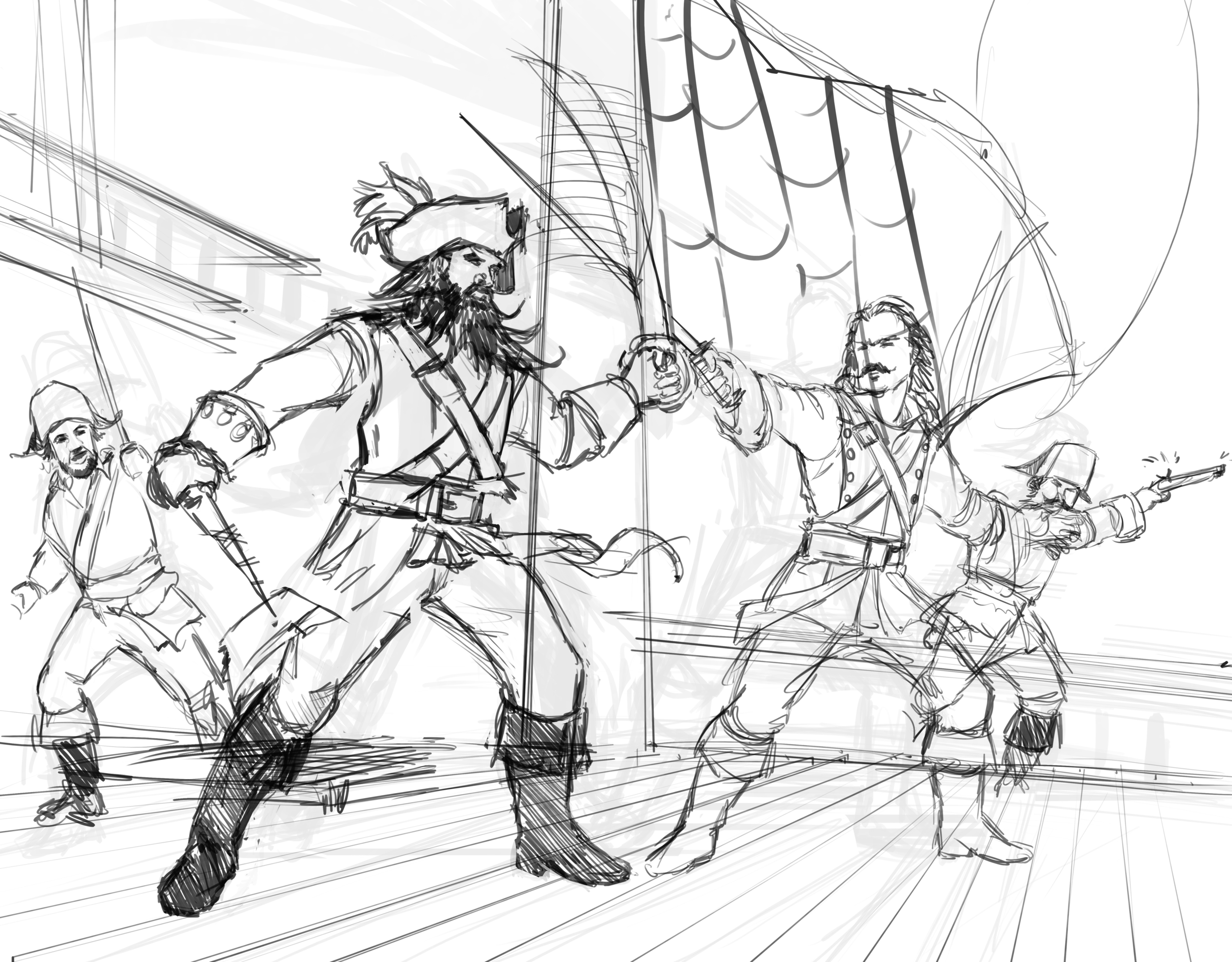 Salut tout le monde, J'ai mis du temps à me décider à participer à ce challenge, c'est un peu le creux de la vague personnellement. Je ne sais pas si je vais perséverer dans cette tentative de reconversion, j'ai l'impression que tout est bouché et que surtout il y a 1 milliard de dessinateurs beaucoup plus talentueux. Je ne vois plus très bien ce que je pourrais apporter. Bref voilà mon premier wip. Un challenge sur les pirates, le rater alors qu'enfant c'est sûrement ce que j'ai le plus dessiné, ca serait dommage. Je vais participer pour le beau geste.