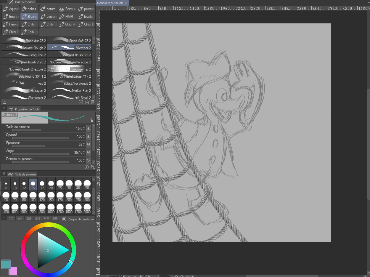 Ce qui me manquait en suivant la formation, c'est de faire des illustrations perso qui me ressemble. Cela signifie qui soit dans mon univers enfantin anime cartoon kawaii. Voilà un croquis vite fait de mon perso claissuqe Disney préféré Donald.