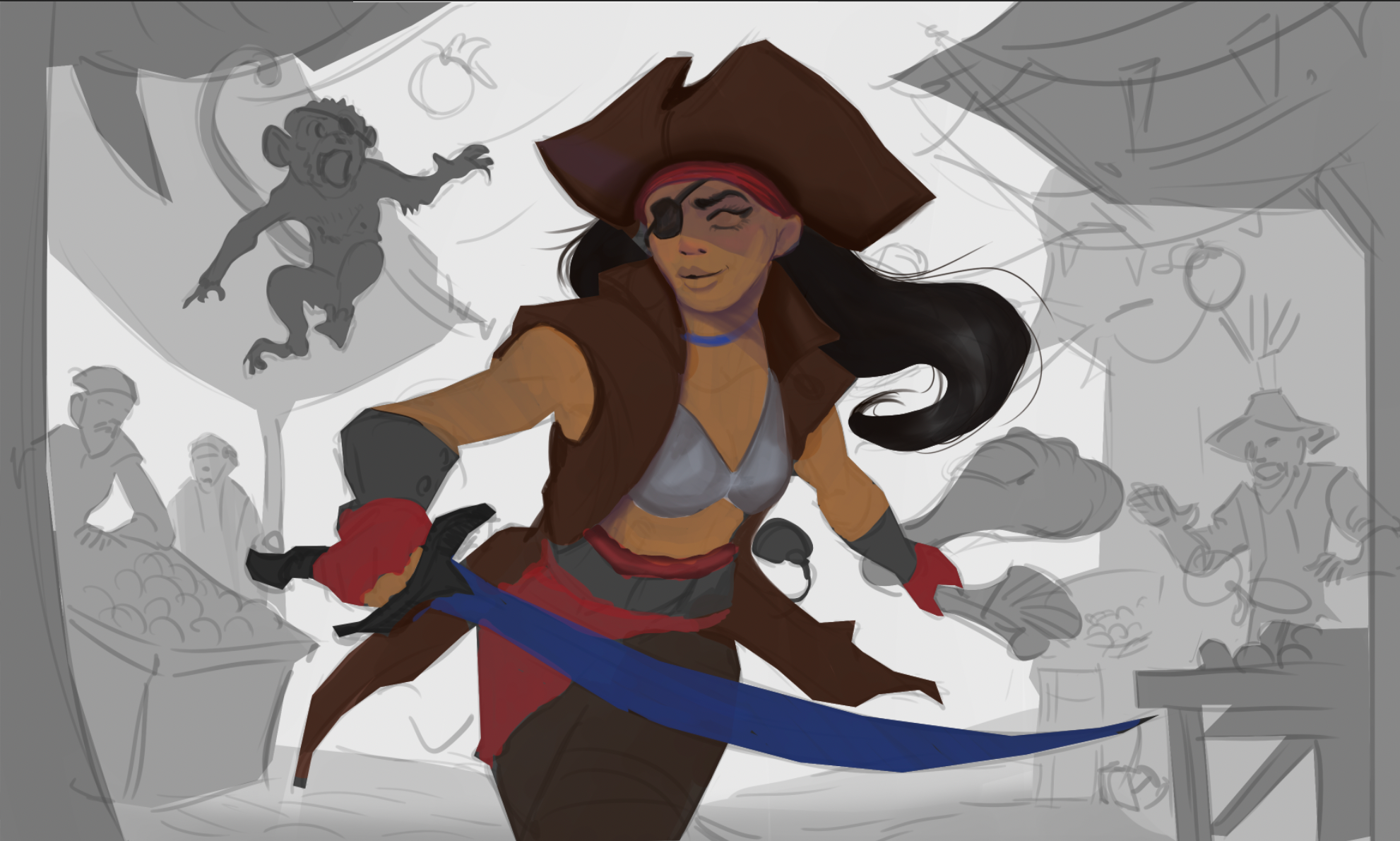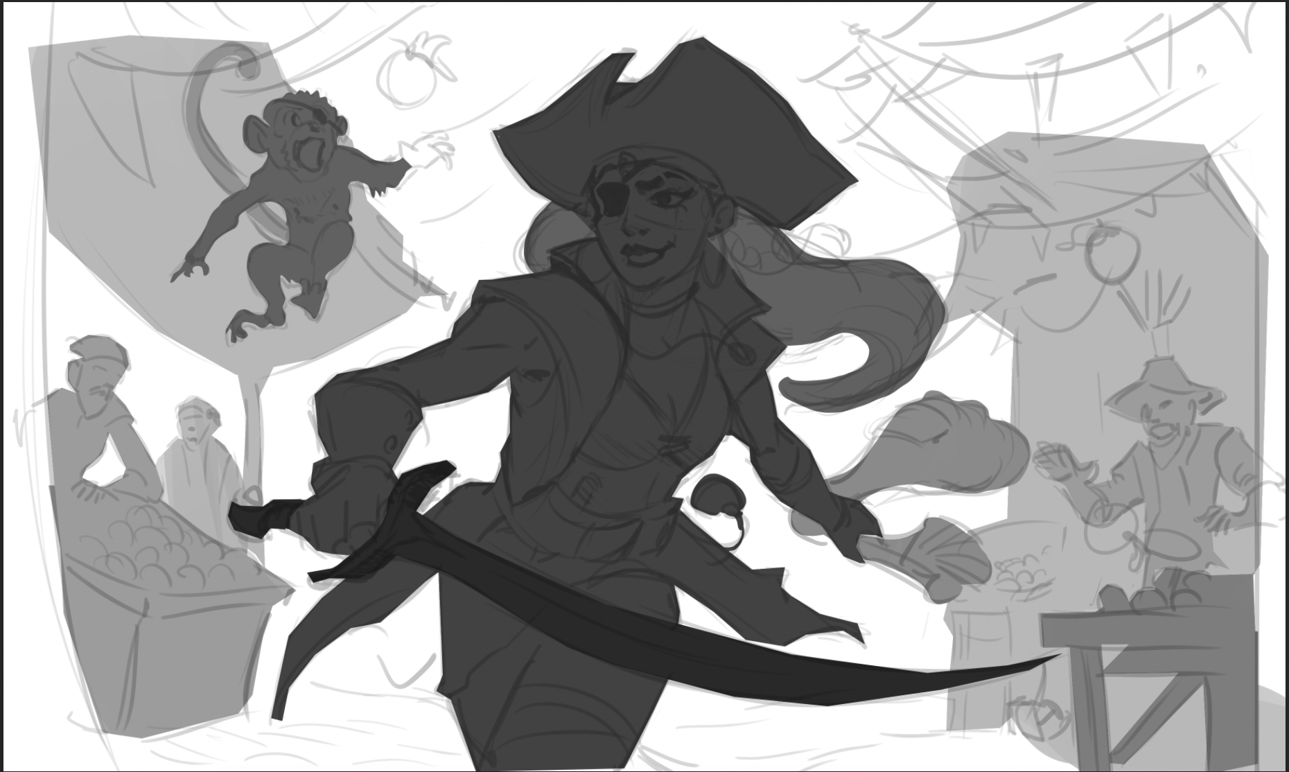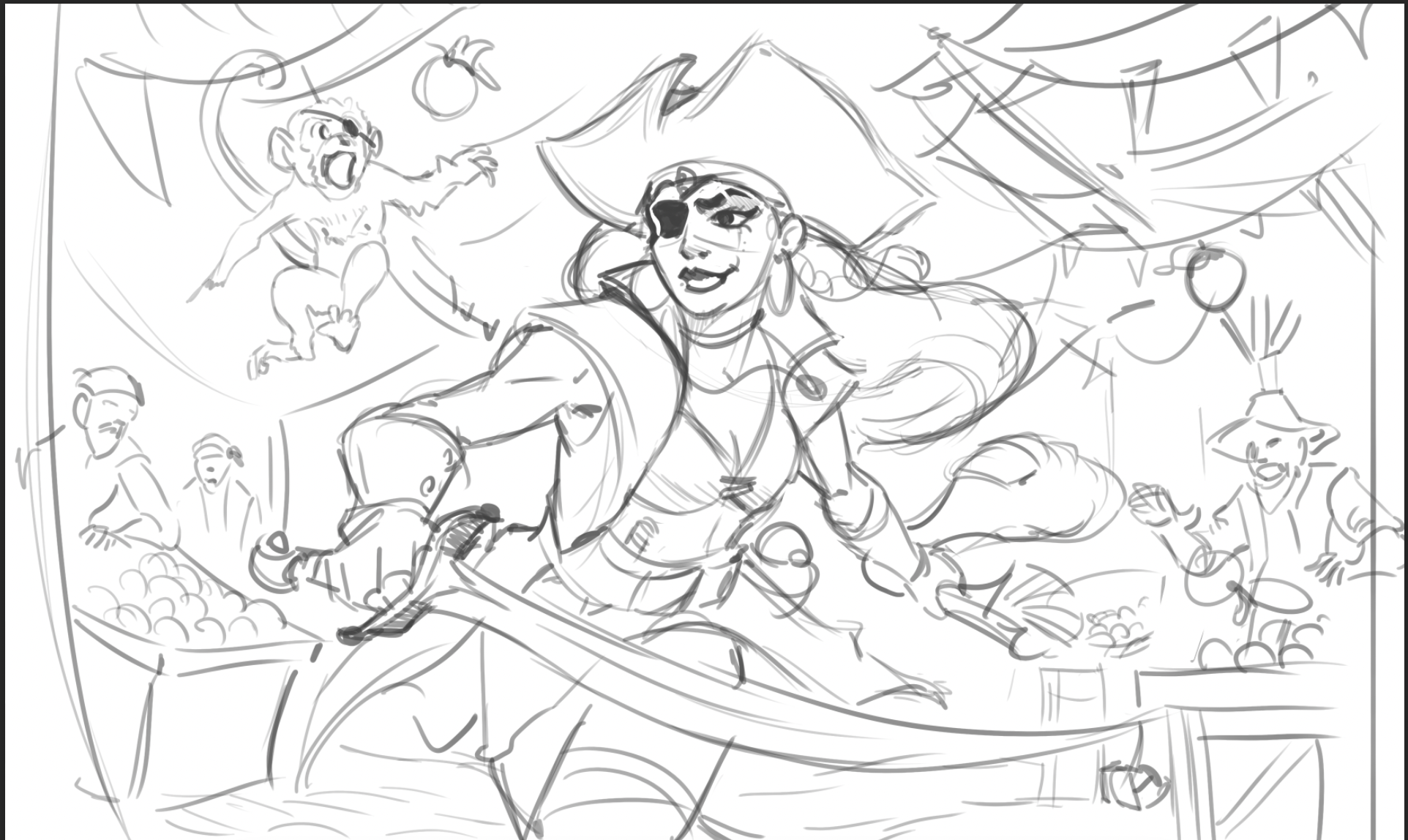 Hello, j'ai commencé il y a quelques jours seulement et j'en profite pour vous partager mon wip (j'essaye d'aller assez vite). Je suis un grand fan de l'univers et je ne peux manquer ce challenge. Je vais également préparer le décors des pirates recherchés j'ai commencé un croquis. -