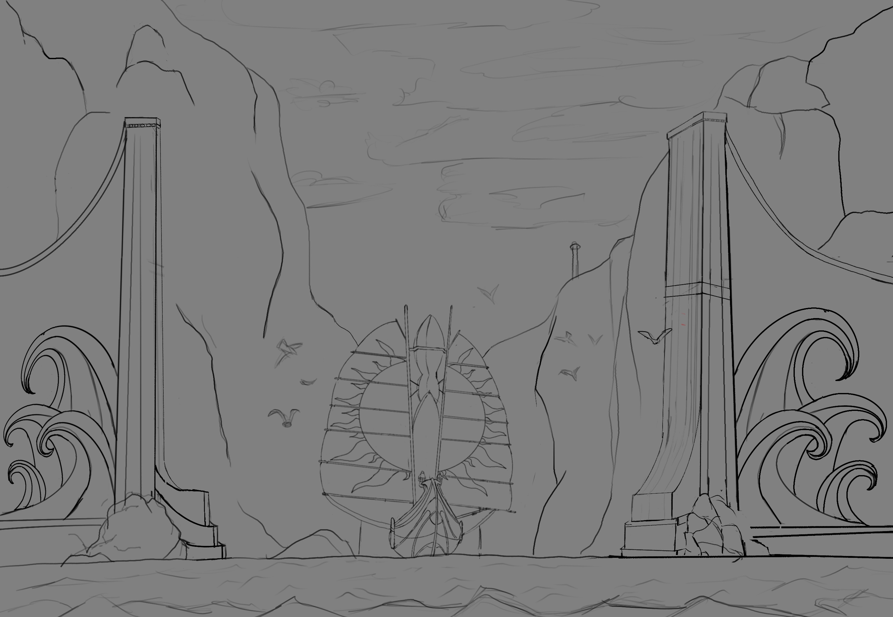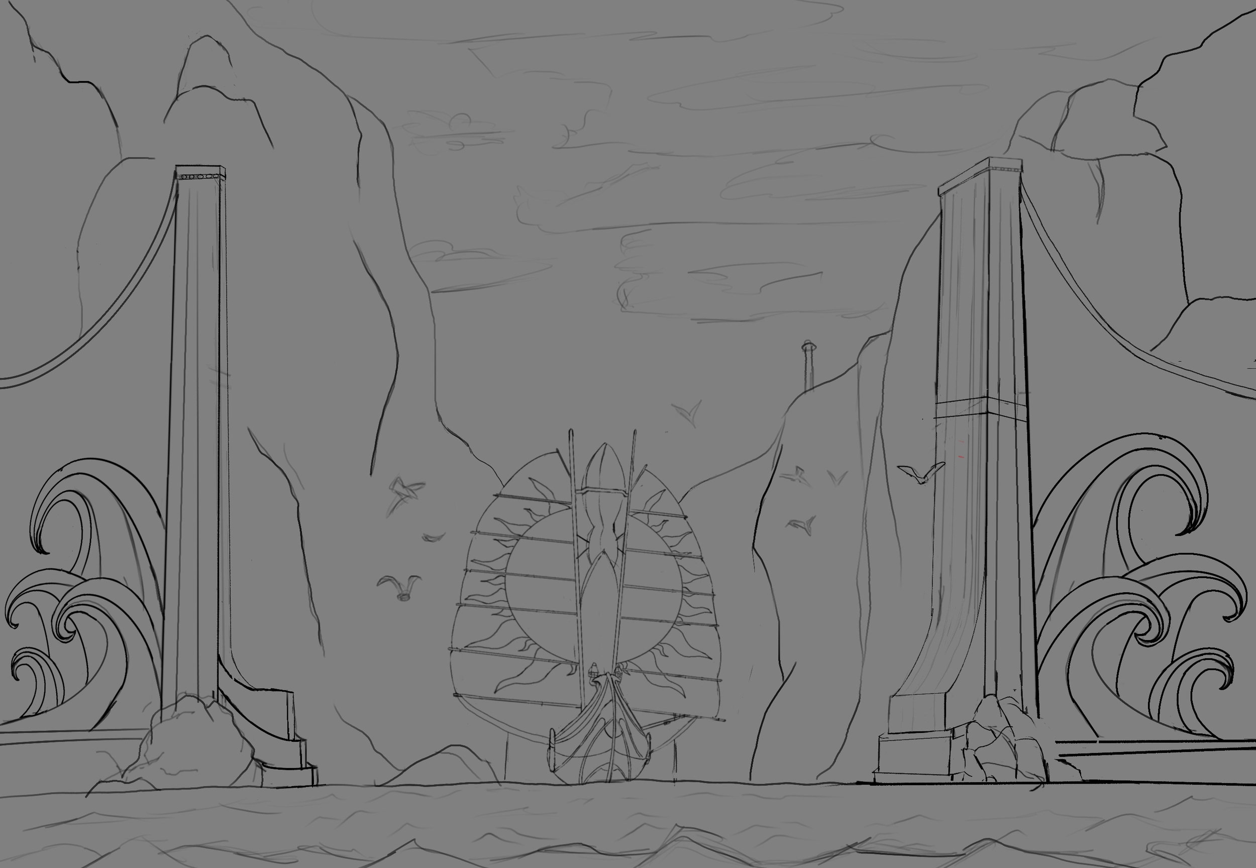 16. Croquis 5 - paysage de Majula issue du jeu vidéo Dark Souls 2.
