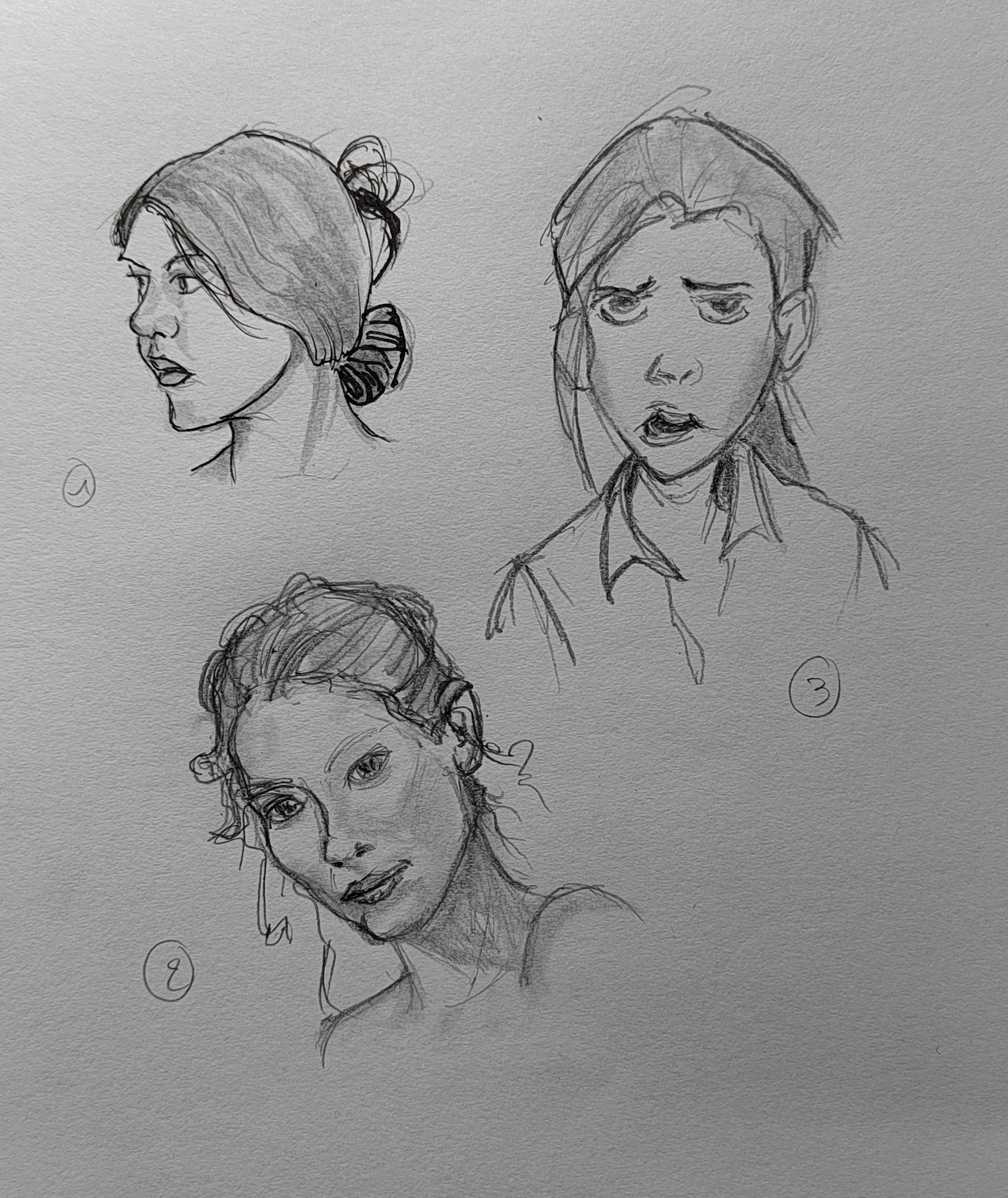 Hello! Jour 23. Toujours sur les têtes. La 1 et la 2 d'après photos. Comme je n'arrive pas à styliser j'ai recopié un dessin style cartoon( la 3 ). Je ne sais pas comment passer de mon style naturel à ça. J'aime bien le côté dynamique et beaucoup plus expressif de la 3. Je n'ai pas encore trouver la méthode de travail pour arriver à produire ce genre de design. Quelqu'un a 1 idée? Bonne journée! 👋 -