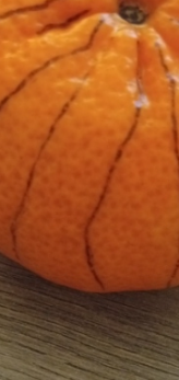 Attention niveau proportions ça manque aussi pasm al de justesse entre la photo et le dessin, tu l'as un peu trop écrasé sur la hauteur et cette zone de l'orange devrait être plus haute : Aussi fais gaffe à faire des lignes bien droites sur tes fruits pour mieux sentir le volume, les lignes tordus comme ça perturbent pas mal comment on va lire ton dessin : -