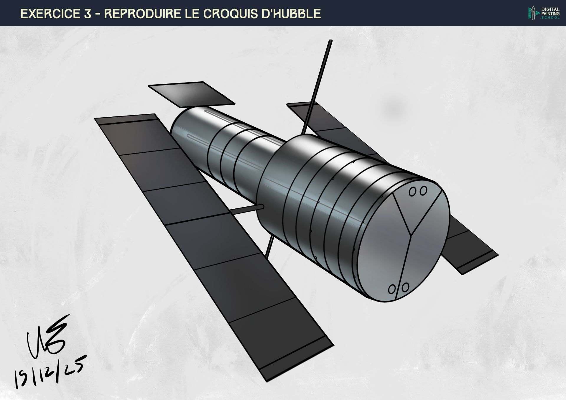 Salut et bienvenue sur dps ! Ton dessin est tres bien pour un etat des lieux comme tu dis, en plus d'etre assez cool il permet de voir tes forces et tes lacunes. Je pense que tu peux te passer de blender pour les premiers chapitres des cours, si tu ne le maitrise pas il pourrait bien rendres tes exercices plus dificile et prise de tete. Je vais juste te donner une critique principale par rapports au plans que tu as mentionné dans la description que tu as donné. Selon moi tes plans ne se distingue pas par rapport aux autres et le resultat fais un peu plat, homogene. Je pense que c'est a cause des valeurs. En fait chaque plans doit avoir sa propre hierarchie de valeurs et son contraste en fonction de sa distance a la camera ; hors dans ton dessin le noir que tu as utilisé pour ton samourai au premier plan se retrouve aussi sur le vaisseau tout derriere. Il y a un detachement entre la scale de ton vaisseau et sa "visibilité", tu devrait te renseigner sur la perspective de profondeur ou atmospherique ; ) Essai de mettre tes plans sur des calques different et diminue leurs valeurs de gris et leurs contraste. Bon je suis pas un expert loin de la mais je suis en train de faire la partie exercice du line art et c'est la meme histoire a peu de chose pres. En esperant que ca t'aide un peu et bonne chance pour la suite ! -