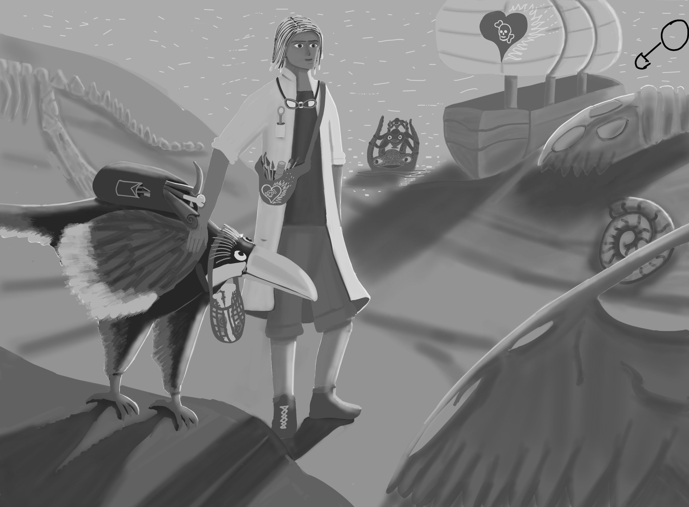 Hello tout le monde voila mon avancée en valeur de gris j'ai essayé de régler certains problèmes j'ai ajouté le marteau de mer à l'arrière avec ces deux petits, j'espère que c'est mieux? Dites moi si vous voyez des choses à modifier... par contre je sais pas du tout comment je vais m'y prendre pour la colo car je suis pas encore arrivé là dans les cours ça risque d'être compliqué!