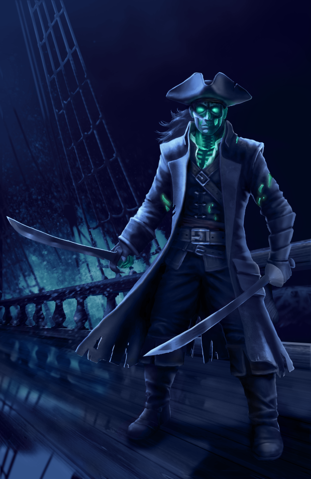 Le rendu est top et donne un très bon effet ! Je trouve que sur ta précédente image, le fait que la zone éclairée ne soit pas translucide rend encore mieux. Ça permet de voir à quoi ressemble le capitaine tout en lui donnant ce côté obscur. -