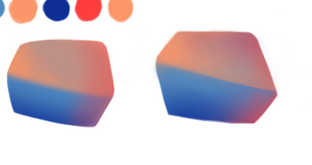 Hey @Bakoubienvenue dans le programme !:) Oui au début ce n'est pas simple mais tu va prendre le coup de main à force ne t'en fait pas 😉 Oui au niveau des formes fais attention à leur ressemblance avec la référence ,: ici ta forme devrait être plus alongée vers la côté droit ici c'est le contraire ta forme est un peu trop écrasée et large par rapport a l"originale , le haut de la forme devrait plus arrondie , ici pareil ta forme manque de largeur ici le côté droit est un peu trop anguleux et la partie bleu trop haute , hésite pas aussi à venir plus flouter la transition entre ton orange et le bleu autre petite chose dans l'ensemble la régularité de tes rebords peut être améliorer ,sur ces différentes parties par exemple , pour améliorer tu peux venir juste passer un coup de gomme à la fin pour cleaner ça une fois que tu es content de ta forme et tes couleurs . ici attention ton jaune/vert au centre est un peu non prononcé et volumineux par rapport à la forme de ref , tu peux venir le dégrader davantage et le rendre moins lumineux vers la partie haute Ici aussi tu peux rendre le point lumineux encore un peu plus diffu Voila j'espère que ça t'aidera , c'est pas facile au début mais tu t'en sors bien continue comme ça !;)
