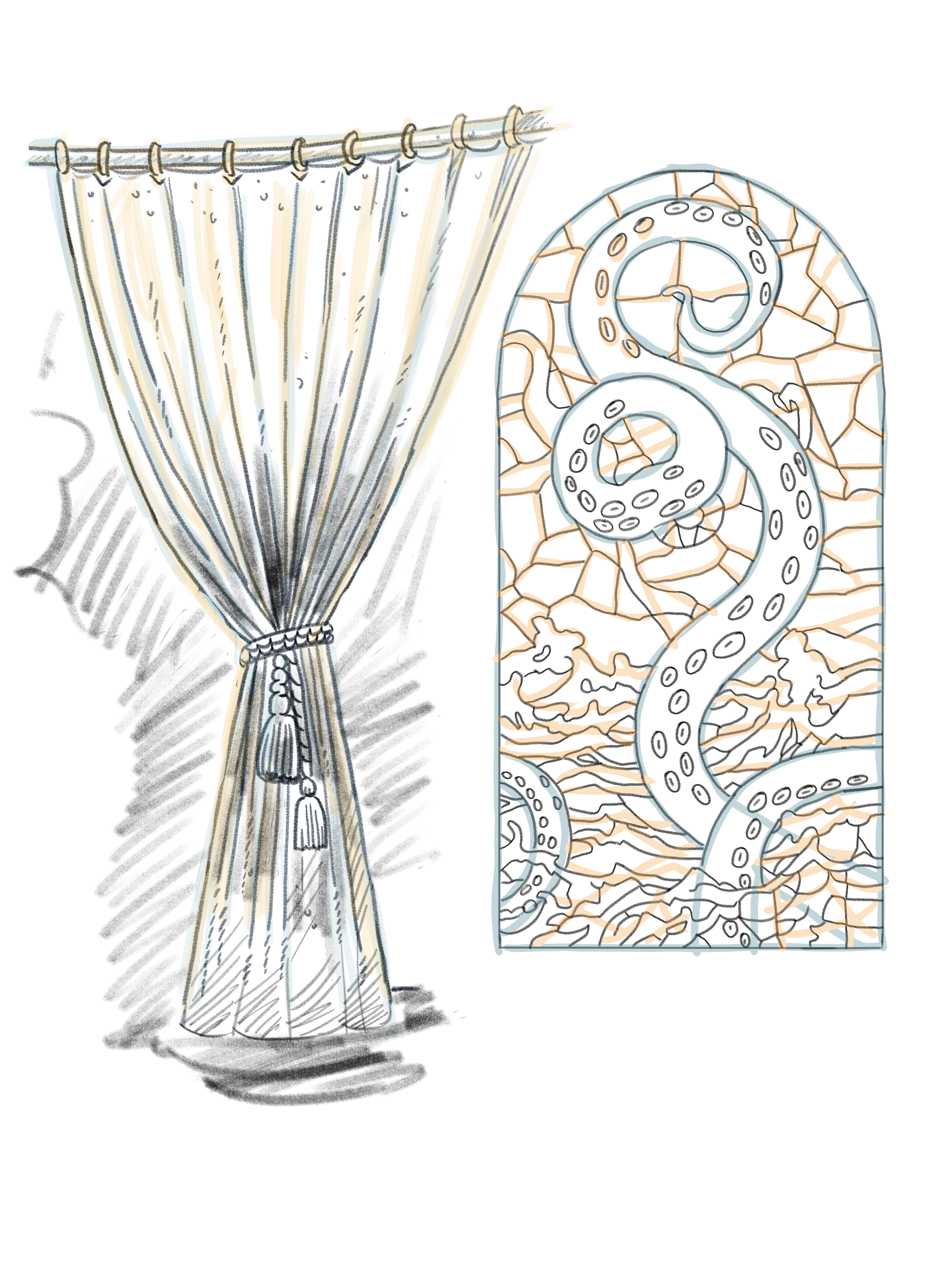 En gros, je veux faire le Black Bones tiré par un attelage de créatures marines géantes, croisements entre des raies mantas et des poissons volants, les Mobulas planeuses. Le navire, suite à son chavirement dans l'océan à l'apogée de sa gloire, a été récupéré par un équipage d'hommes poissons qui l'ont attelé aux Mobulas planeuses et lui ont construits des grandes ailes repliables qui lui permettent non pas de s'envoler mais de planner plusieurs centaines de mètres au dessus de l'eau. Sauf que les Mobulas planeuses, en plus de planner comme des poissons volants, sont des créatures capables de filtrer la roche volcanique des fonds marins et de la recracher sous forme de fumée. Ce sont ces trois éléments combinés qui ont lancés la légende du Black Bones. En effet, les pauvres navires assaillis et leurs équipages ne voyaient pas les Mobulas (cachées dans la brume de leur fumée) et ne voyaient qu'un bateau disparu depuis des siècles voguant au dessus des flots dans une mer de brume, y compris en plein jour. Quelques témoignages des rares survivants ont même parlés de silhouettes de spectres encapés. Ils se faisaient torpiller à très longue distance et voyaient impuissants leurs navires sombrer sans que jamais le navire fantôme ne les aborde frontalement.