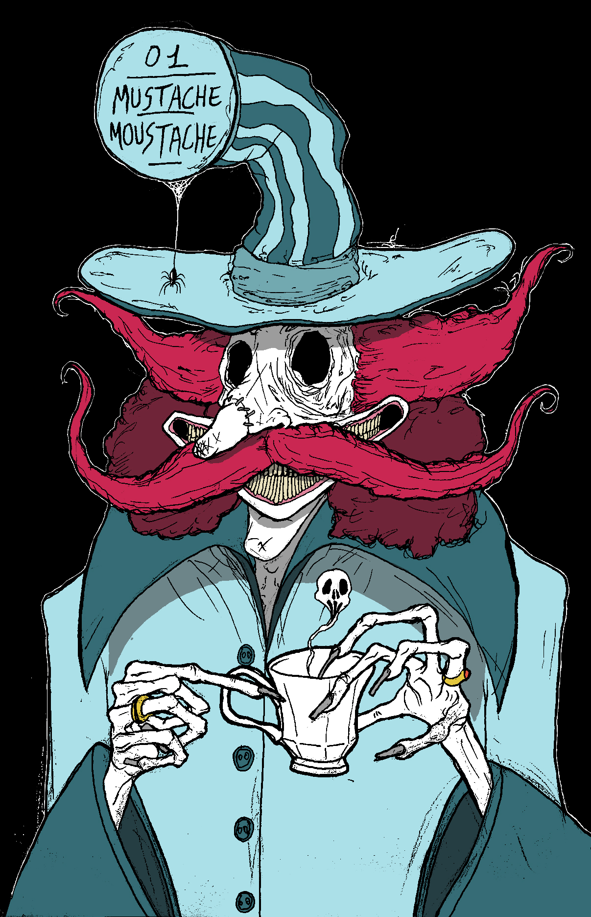 Bonjour tout le monde. Et on est reparti pour une nouvelle année ! On va bien s'amuser. @bussi29 Très belle retranscription du portrait de ton arrière grand-père, Bravo ! @fred21 T'inquiètes de mon côté j'ai compris la blague. Quand tu sais que l'un a interprété l'autre, c'est presque une guerre de la moustache. @Ninipumpkin Très mignonne la mascotte, tu pourrais l'envoyer au kebab en question 😄 De mon côté, voici ma participation. Je voulais commencer par un baron mélangeant le baron de Münchausen, Bobby Liebling du groupe Pentagram, le Chapelier Fou d'Alice Madness Return et les mains de la sorcière de Caroline. Vous prendrez bien un tasse thé ?