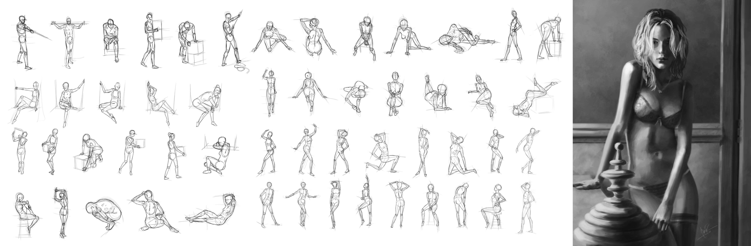 Merci pour ton retour, J'essaie de corriger à chaque étape en superposant à la ref pour voir où ça cloche mais je me sens toujours un peu off sur les proportions au final. Je sais pas si je suis pas assez rigoureux sur les mesures ou si je comprends juste pas tellement ce que je suis entrain de dessiner 😅 J'espère que ça va s'améliorer avec la pratique. Voilà la suite des exos : Rien de spécial si ce n'est pour les formes imaginaires en fils de fer qui ont vraiment mis à mal mon cerveau. Du coup j'ai décider de refaire en traçant en pointillé l'arrière des formes histoire de mieux comprendre ce qu'il se passait mais ça reste pas super lisible. Et l'exo de shading je me suis amusé à le dupliquer et faire une version sans contours pour voir. Bonne journée 🙂 -