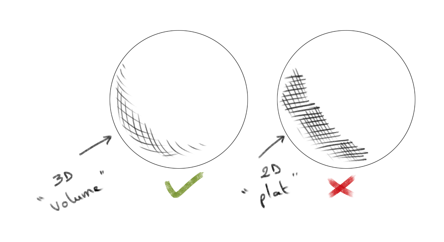Salut @enzyme, Très beau travail sur ton croquis du scaphandre, c'est très propre comme croquis bravo ! 👍 Un point d'amélioration que je pourrais te conseiller, c'est au niveau de tes hachures. Si tu souhaites obtenir un meilleur rendu et surtout, un rendu qui donne plus de volume à ton objet, je te conseille de faire suivre le volume de ce dernier à tes hachures. Je t'ai fait ce petit schéma rapide, tu vas tout de suite comprendre : Rien à redire mis à part ça. Continue comme ça ! 😄
