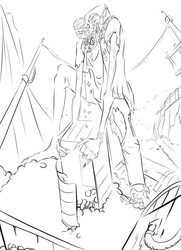 Hola ! J'avais commencé le marteau de mer mais j'avoue que quand j'ai vu le Trésorier apparaître j'ai eu très envie de le faire. Le Marteau de Mer attendra un peu ! J'en suis actuellement au croquis