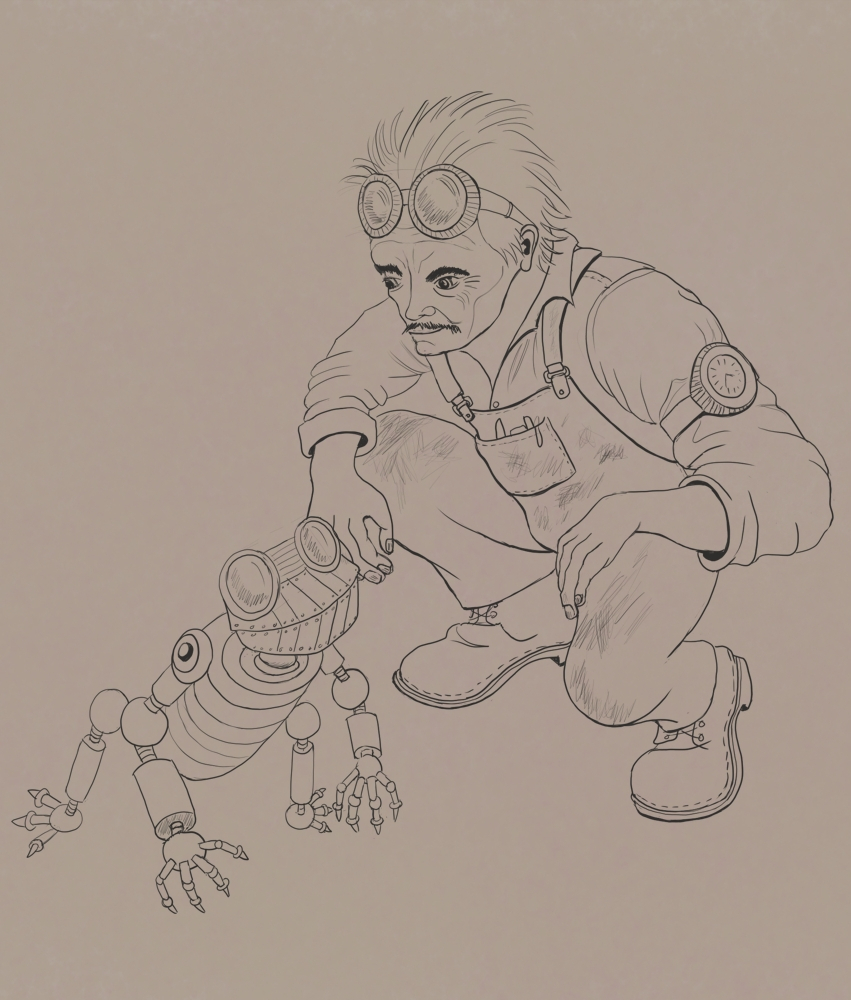 Merci @Chazpour tes propositions de personnages, elles sont vraiment intéressantes. Sans ces suggestions, jamais je n'aurais pensé à dessiner de tels personnages. Pour le mécanicien, voici de nouveau un croquis plus détaillé que la semaine passée. On dirait que j'aime beaucoup les grenouilles. En fait oui, c'est un animal que je trouve amusant et sympathique. Et celle-ci fait un petit câlin à son créateur !
