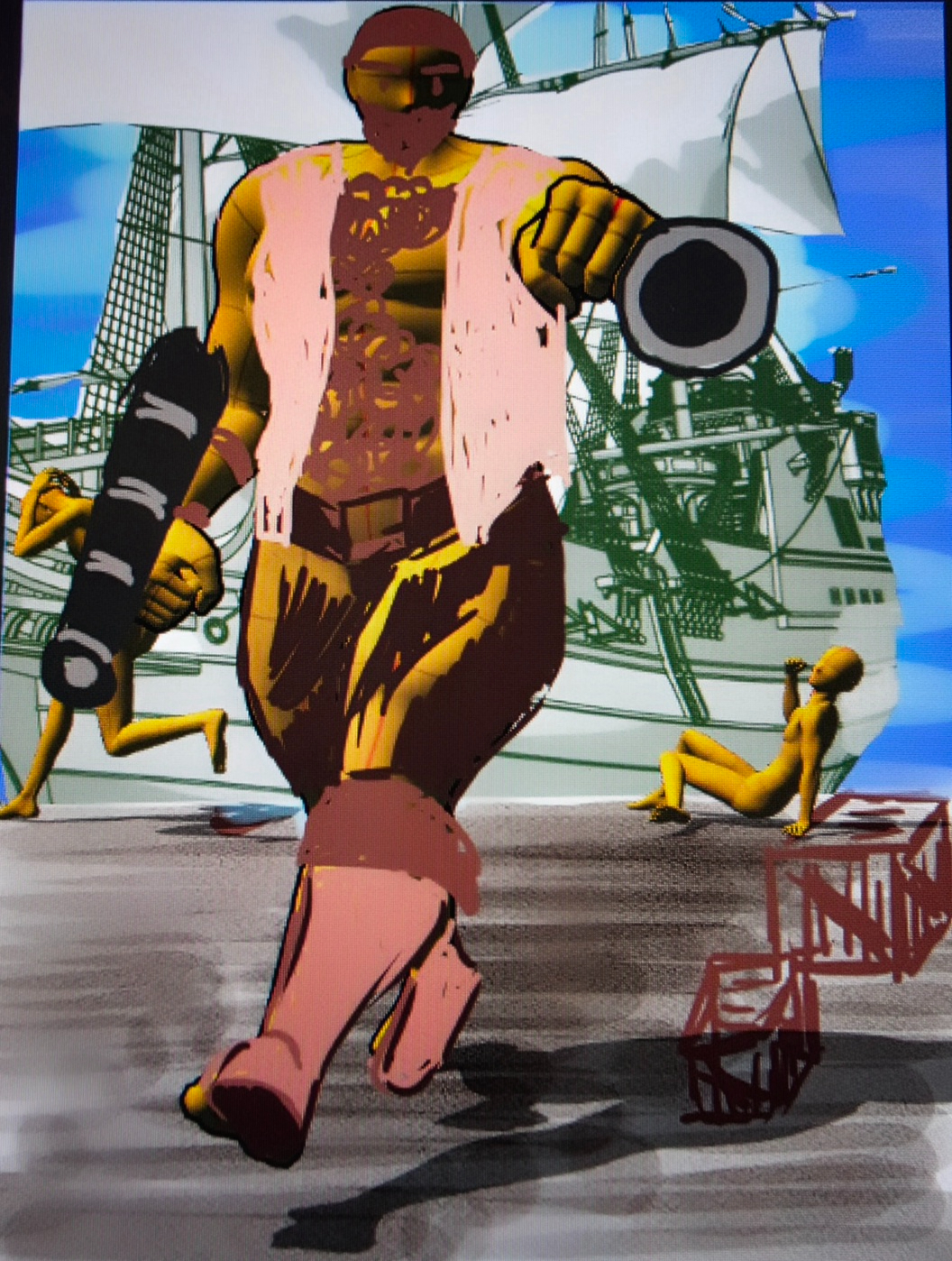 Allez Grosse passe de modélisation en sculpting. Encore un peu de travail sur les vêtements, le singe et les lumières et après je passe en Paint Over (je reprendrai complètement le fond je pense).