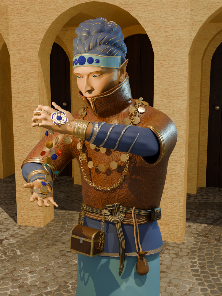 oulàaaa, j'ai tellement zappé de mettre à jour ce topic-là moi. Mon petit dernier ^^ Un jinn féerique axé sur l'achat d'objets avec de l'or (illusoire), de l'argent ou des pierres précieuses.