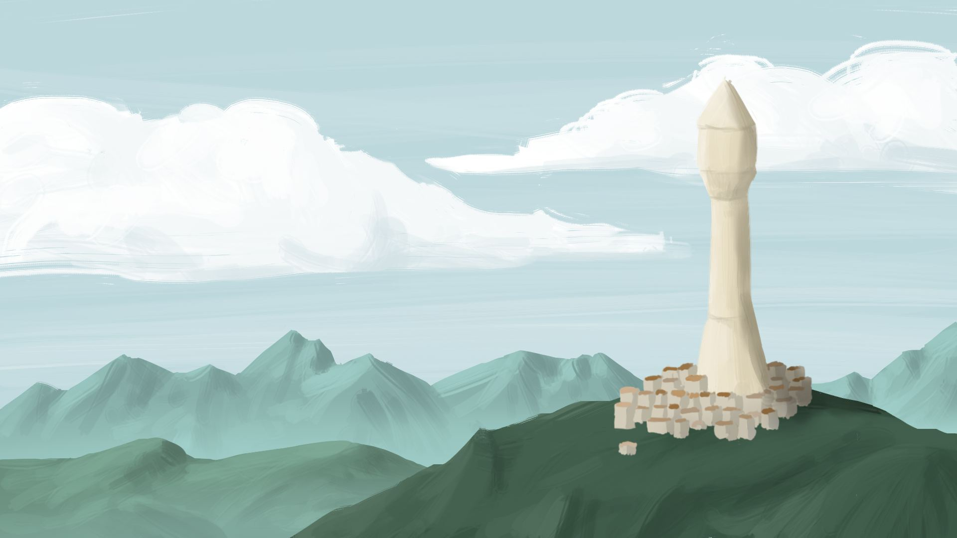 Bonjour à tous, J'ai clairement explosé mon chrono. Peinture directement en masse sur Krita. 35 minutes (au lieu des 15 prévues), et je n’ai pas eu le temps d'ajouter des détails sur la tour (on dirait une fusée actuellement 😉 ). -