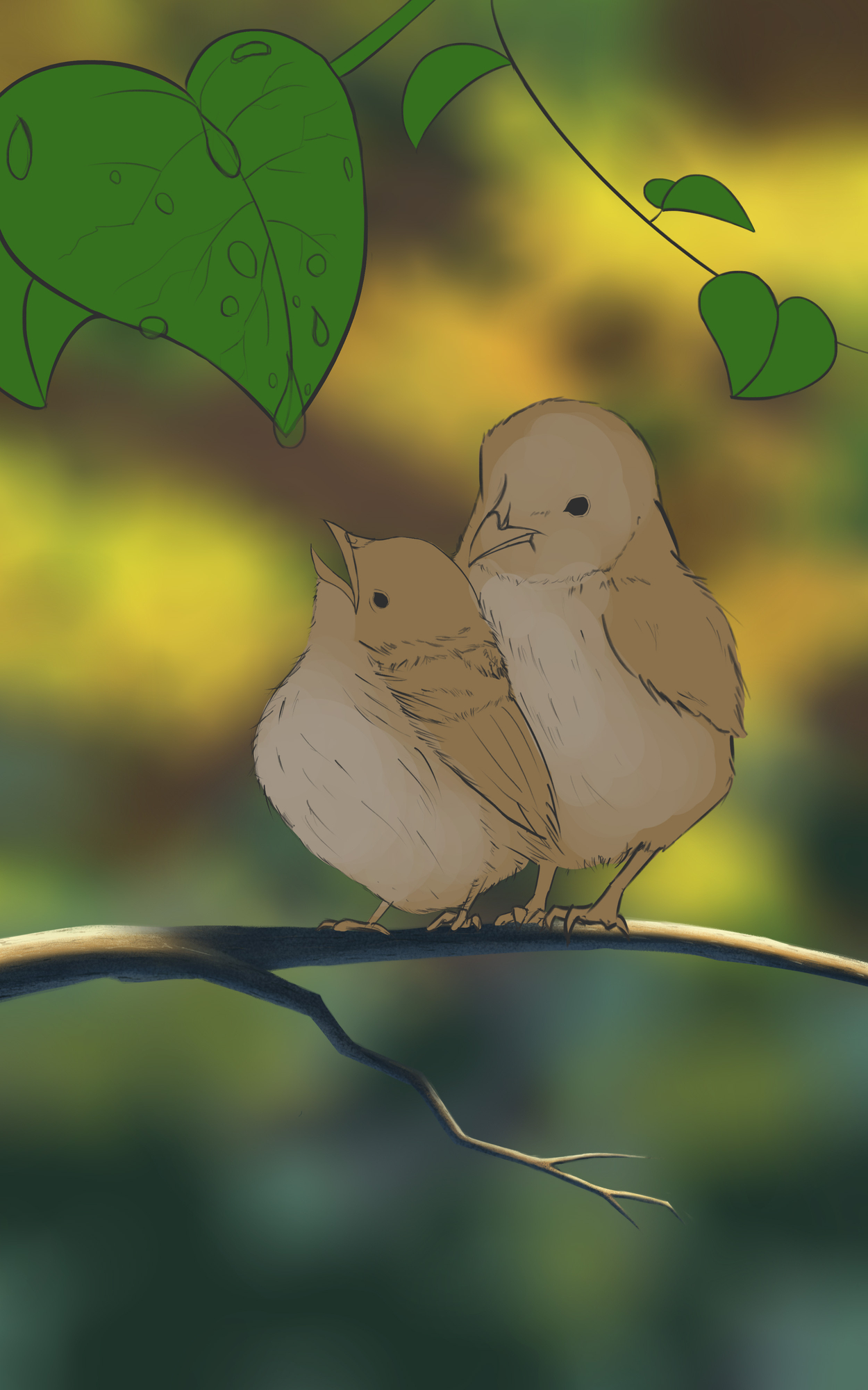 Salut @Marcassin, Concernant les oisillons, le soucis du bec est bien réglé ici, c'est bien 👌 Je maintiendrais par contre que les oiseaux auraient besoin d'être un peu plus "élancés" dans la hauteur. N'hésite pas à agrandir et allonger un peu leur corps, quitte à réduire un chouia la tête. Ici, on dirait que leur corps c'est juste : un ventre + une grosse tête en gros (j'exagère mais c'est pour que tu vois bien l'idée). Compare bien avec la version du cours si jamais : /// Concernant ton chateau, c'est bien comme ça mais je pense que tu peux le décaler encore un peu plus sur la droite : Tu vois, ici, ça fait pas une tangente mais presque avec le bord du canvas. Concernant les montagnes en fond, c'est un bon ajout mais pour l'instant, c'est assez difficile de se rendre compte totalement car ton croquis est très rough encore. Je te conseillerais de l'affiner un petit peu avant de passer à la suite. Bon travail ! 🙂