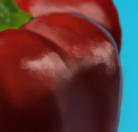 Hello ! PAs mal le poivron, je pense que ca manque juste un peu de douceur par endroits , Ici par exemple tu pourrais "étaler" un peu plus les lumières. Même chose là je trouve que le bleu est un peu fort. Ensuite l'ombre portée ici est vraiment trop intense, vérifie bien sur ta ref. Pour la rose c'est bien parti, Alors c'est pas forcément flagrant au premier abord mais cette zone de la rose est légèrement teintée de rose. Il est important d'apporter ces petites nuances de couleurs, c'est ce qui va faire la richesse et le réalisme de ton sujet. Ici la zone à gauche est trop claire, on devrait avoir une transition plus dégradé de l'ombre vers la lumière. Sinon je pense que ta feuille est un peu trop floue, les parties éclairées aux extrémités devraient virer un peu plus vers le bleu : On continue 😉